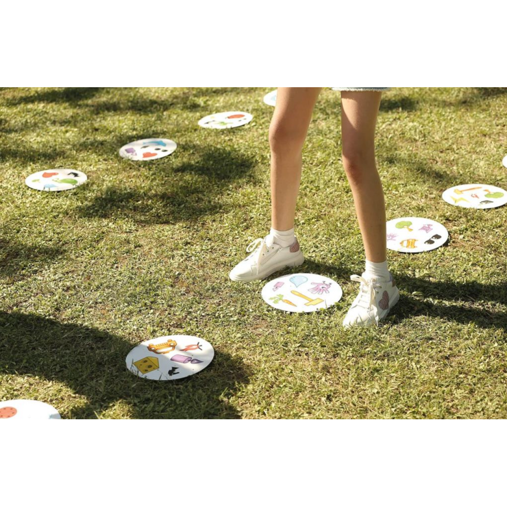 Jeu d’ambiance Dooble Giant contenant 55 cartes rondes et colorées sur lesquelles se trouvent 8 illustrations différentes - Propose un principe original et amusant qui permet d’éprouver la rapidité et le sens d’observation des joueurs - Inclut 4 jeux uniques dans une seule boîte - Se joue en français - Permet la formation de 2 équipes de 2 joueurs chacune, soit 4 joueurs au total.