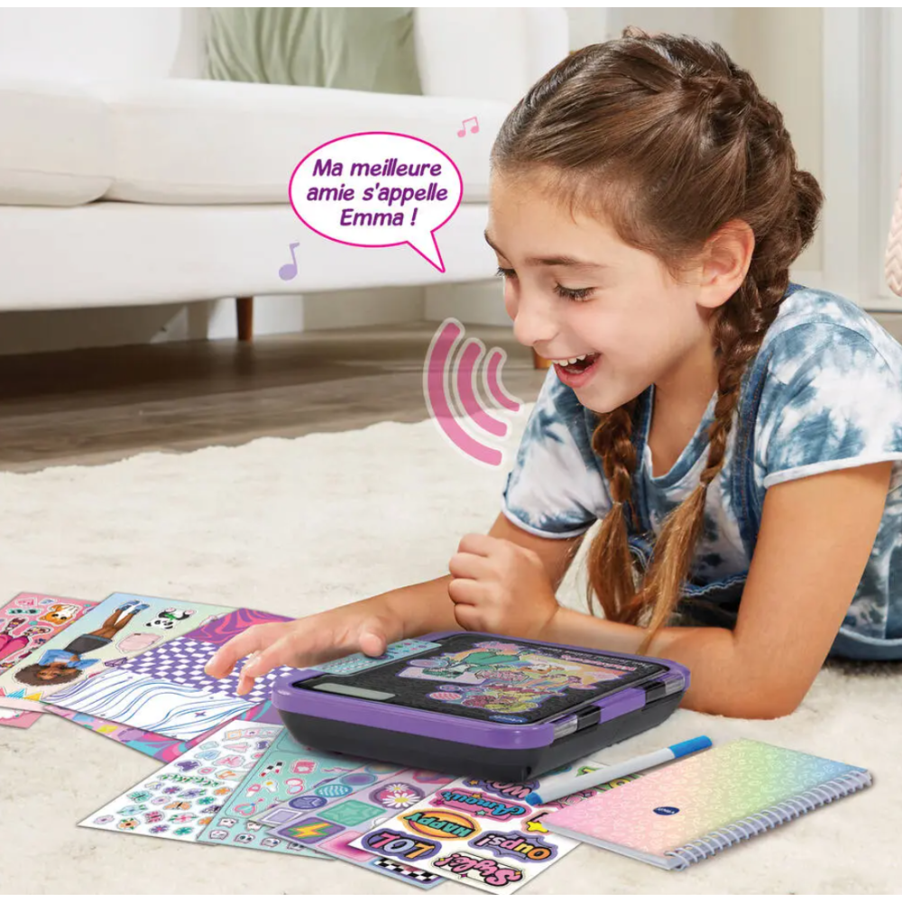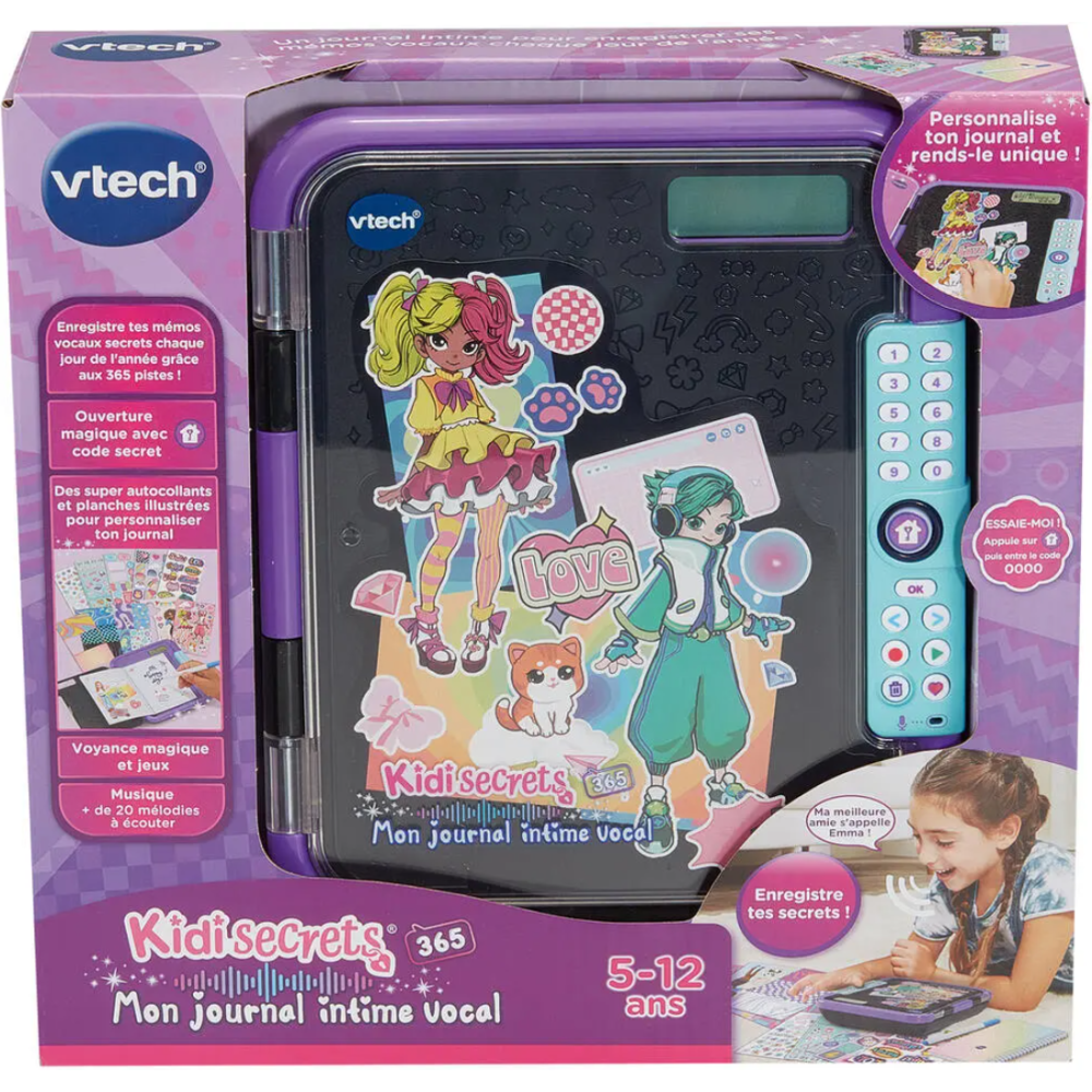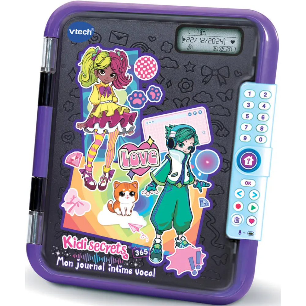 Mon journal intime vocal de couleur noire permettant aux enfants de 12 ans et plus d’enregistrer leurs histoires et idées de façon simple et amusante - Affiche un design moderne et chic qui s’intègre à tous les styles - Encourage l'écriture et la réflexion à travers le jeu éducatif - Offre la possibilité d'enregistrer 365 messages vocaux, soit un secret par jour pendant 1 an - Accompagné de 3 piles LR6 fournies - Indiqué pour les enfants dès l’âge de 5 ans - Accompagne les enfants partout, que ce soit à l’école, chez des amis ou en voyage - Offre un espace sécurisé pour s'exprimer et garder des souvenirs précieux - Fourni avec un carnet A6 de 30 pages et un feutre pour écrire ou illustrer les secrets - Protégé par un code à 4 chiffres choisi par l’enfant.