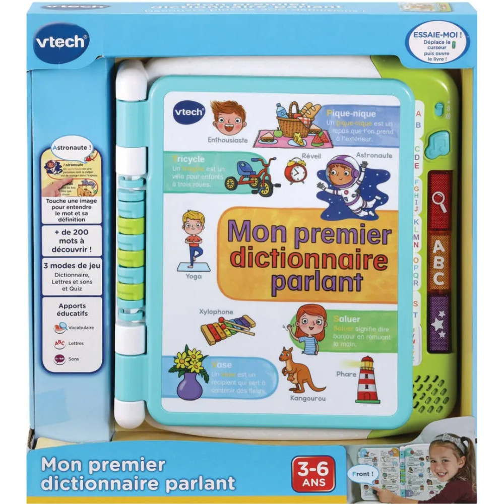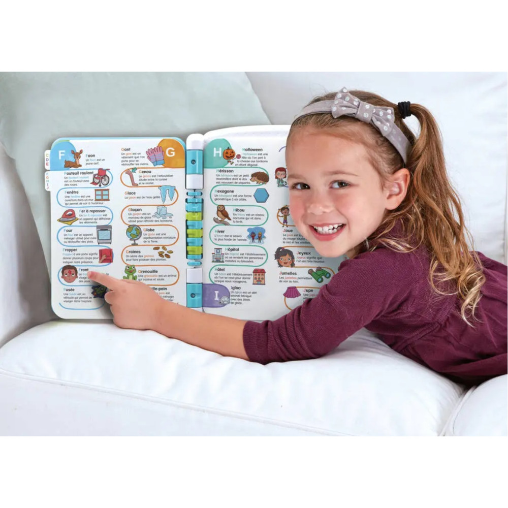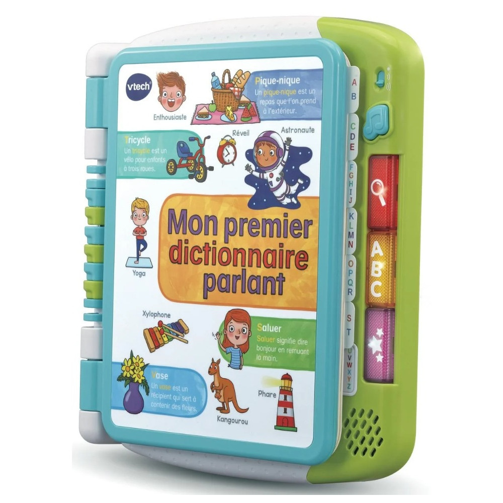 Mon premier dictionnaire parlant - Un dictionnaire parlant et interactif pour découvrir plus de 200 nouveaux mots et leur définition ! L'enfant découvre comment se servir d'un dictionnaire, les lettres et leurs sons et s'amuse à retrouver des mots en fonction de leur définition. Lorsqu'il touche une image, il entend le mot et sa définition. 3 modes de jeu : - Vocabulaire : pour entendre la définition de 207 mots. Par exemple : Astronaute - Un astronaute est une personne dont le métier est de voyager dans l'espace. Lettres et sons : pour découvrir les lettres et leur prononciation. - Jeu et quiz : pour retrouver les mots en fonction de leur définition ou catégorie (, professions). Par exemple Trouve le mot qui désigne un mammifère marin pouvant mesurer jusqu'à trente mètres.