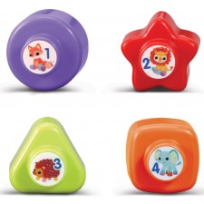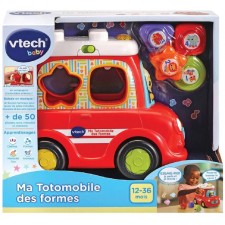 Ma totomobile des formes - De 12 à 36 mois - Bébé fait avancer sa voiture et déclenche sons, mélodies et effets lumineux - Grâce au classeur de formes, bébé développe sa motricité fine et découvre les chiffres, les objets, les couleurs et les formes - Les formes s'encastrent aussi sur le toit pour personnaliser sa voiture ! Pratique, les blocs se rangent dans le coffre de la voiture pour ne pas les perdre - 3 chansons et 15 mélodies - Arrêt automatique.