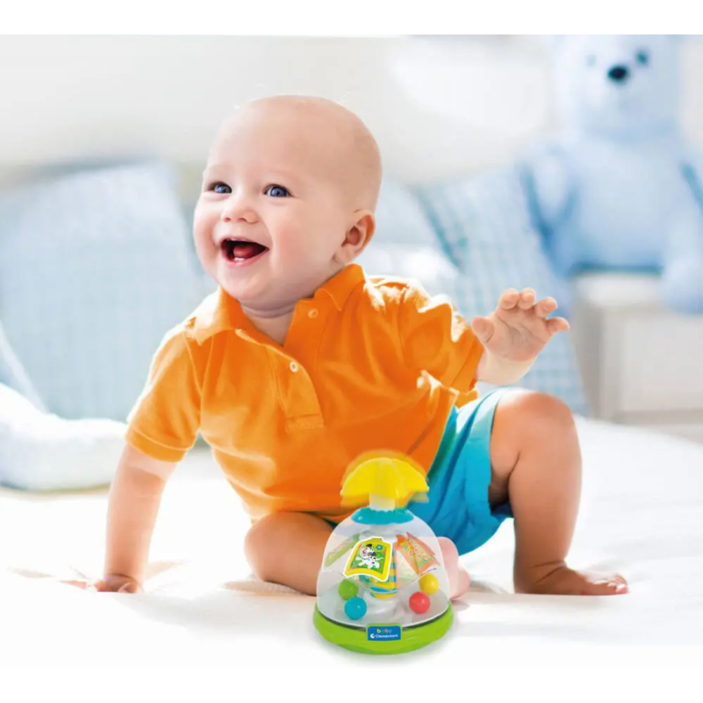Le manège à billes conçu pour éveiller la dextérité et la compréhension de bébé - Recommandé aux enfants de 9 mois et plus - Embarque un mécanisme rotatif avec des balles rebondissantes colorées - Offre une grande facilité d'utilisation à travers son mécanisme d’action déclenché par simple pression sur l’étoile centrale - Arbore des couleurs et des dessins attractifs pour les enfants.