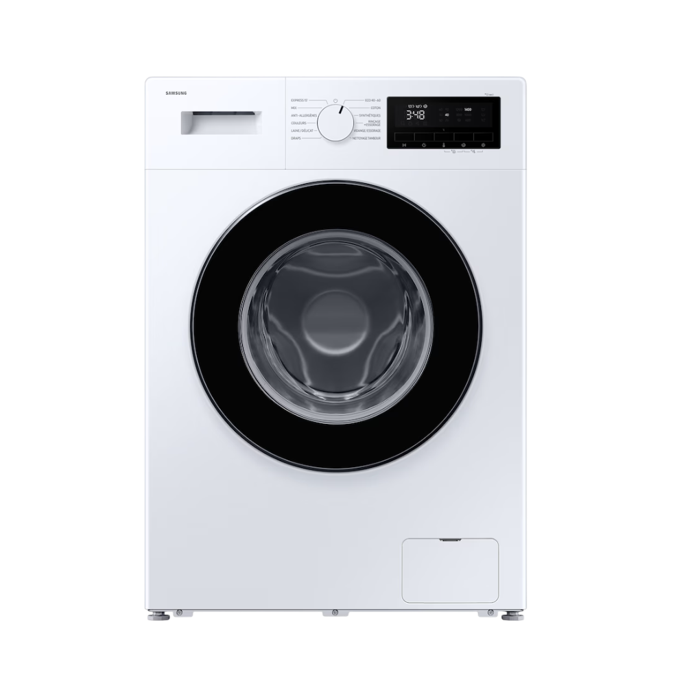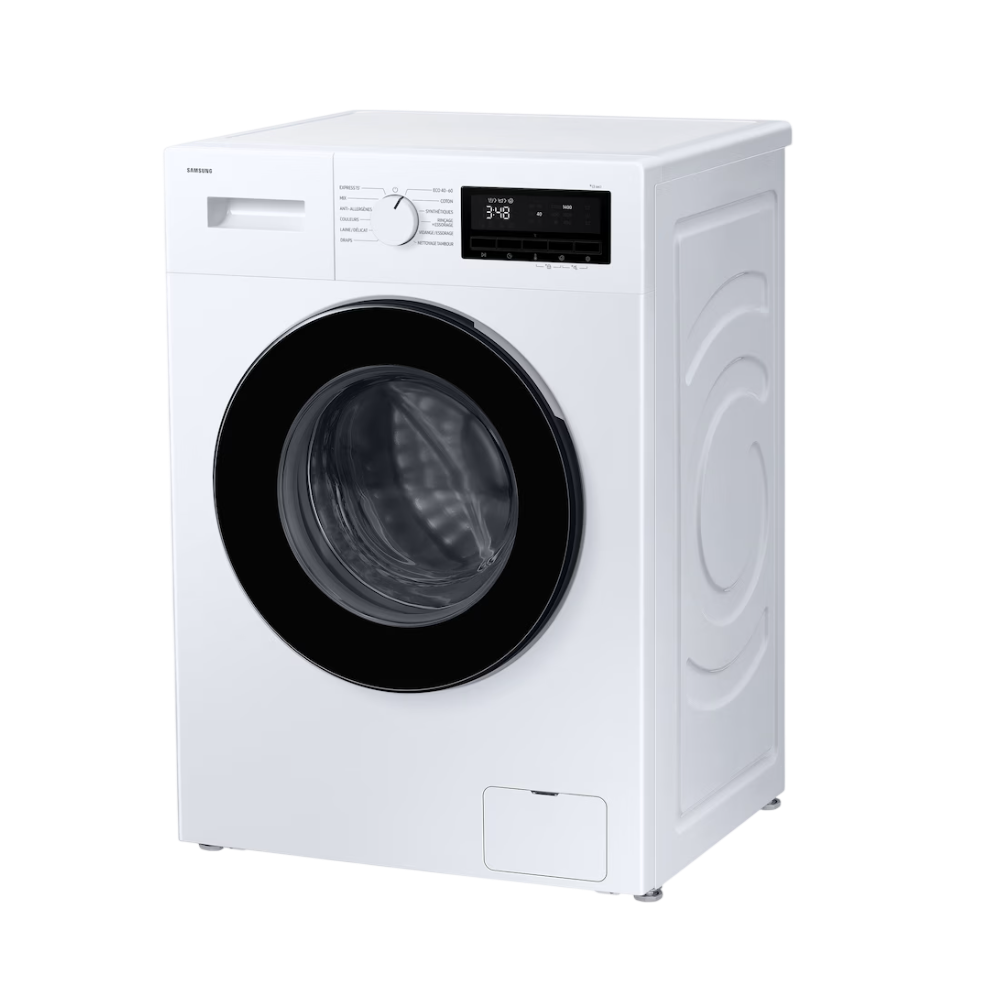 Lave linge frontal SAMSUNG WW70FG3M05AWEF - Classe énergétique : A - Capacité de lavage : 7 KG - Consommation d’eau cycle éco 40-60 : 45 L - Niveau sonore : 76 dB - Fonctionnalités de l’appareil : ARRÊTE DIFFÉRÉE JUSQU’À 24H - Type de pose :LIBRE - Vitesse d’essorage : 1200 TR/MIN - Consommation d’énergie sur 100 cycle de lavage : 45 kWh - Connecté : NON - Bandeau de commande : LCD LED - MOLETTE - Caractéristiques complémentaires : 12 PROGRAMMES – MOTEUR INVERTER - Couleur : BLANC - Garantie légale de conformité et de vices cachés : 24 MOIS - Poids : 57 KG - Sécurité : SÉCURITÉ ENFANTS- PRÉLAVAGE - Pays de fabrication : CHINE - Dimensions: Hauteur (cm) : 85 cm - Largeur (cm): 60 cm - Profondeur (cm) : 46 cm.