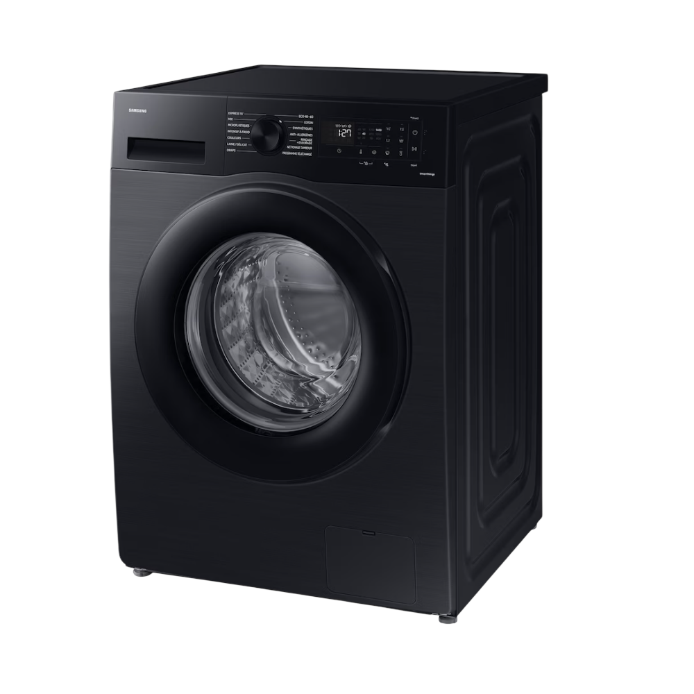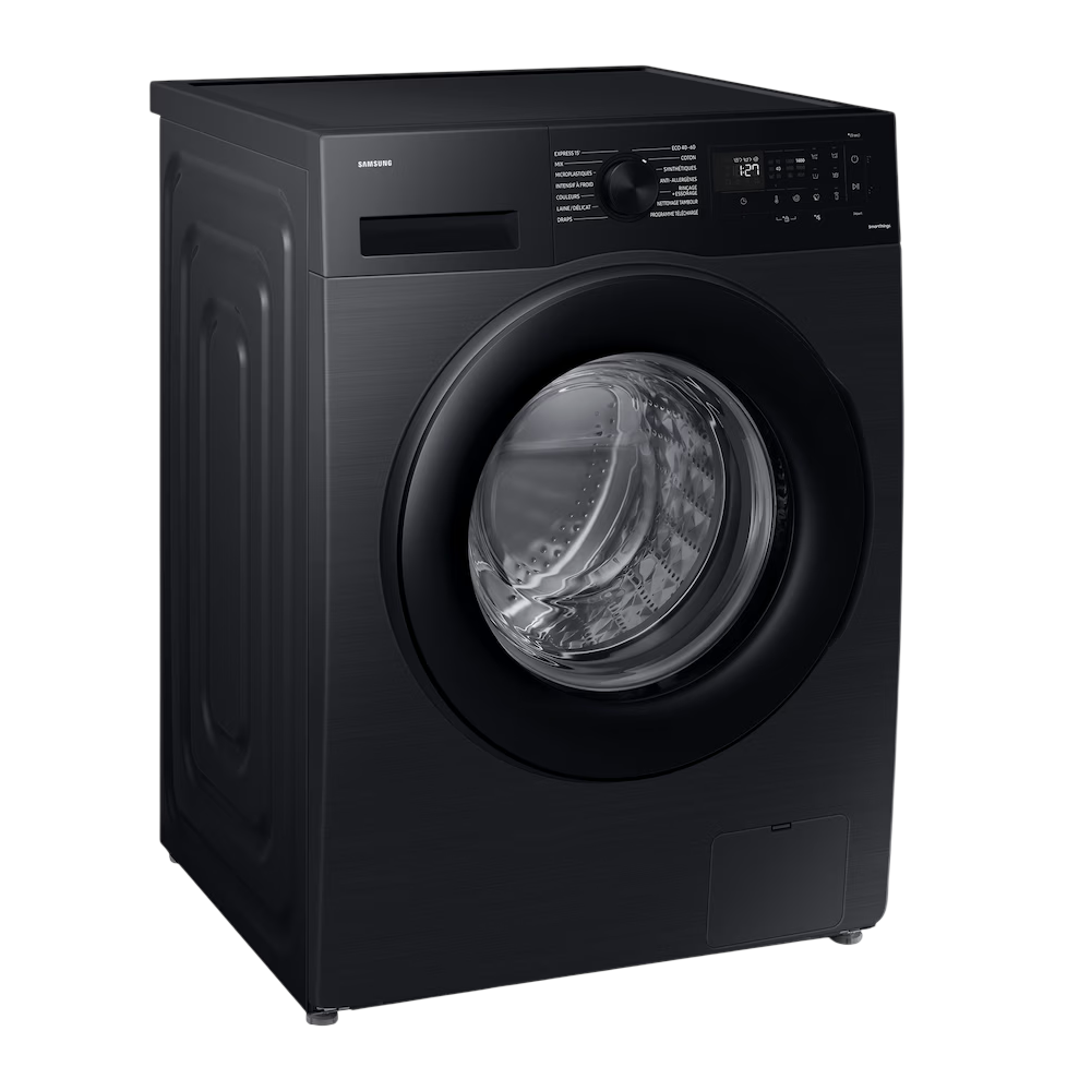 Le lave-linge hublot SAMSUNG WW90CGC04DABEF 9 kg est idéal pour les familles grâce à sa grande capacité et ses performances efficaces. Classé A en efficacité énergétique, il consomme seulement 44 kWh/100 cycles et 50 L d’eau par cycle. Son essorage jusqu’à 1400 tours/min (efficacité B) garantit un linge mieux essoré, avec un niveau sonore de 72 dB. Doté de la technologie ecobubble™, d’un programme vapeur, d’un mode anti-bactérien et d’un tiroir de lessive auto-nettoyant, il assure un lavage hygiénique et pratique. Connecté en Wi-Fi (SmartThings), il permet aussi de télécharger des cycles. Dimensions : 60 x 85 x 55 cm.