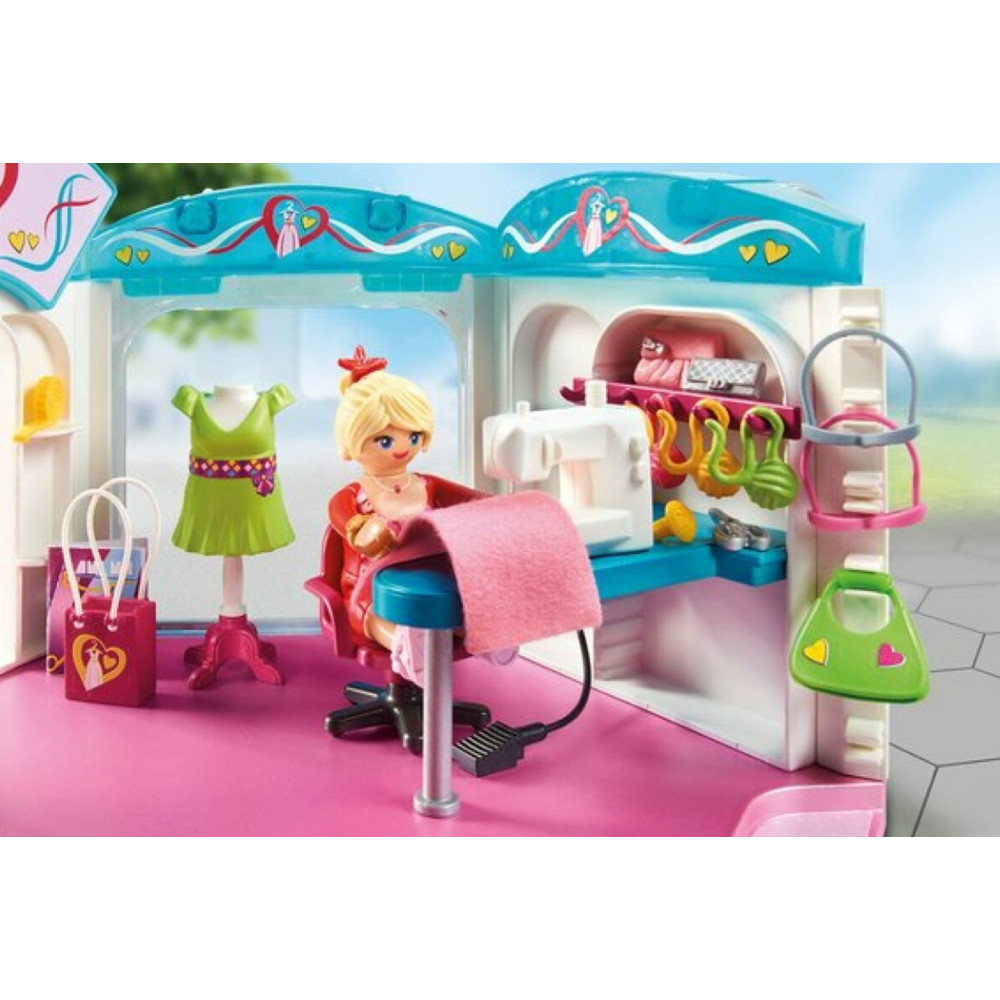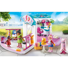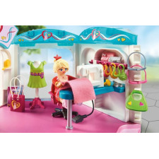 Faire du shopping dans les magasins PLAYMOBIL est un réel plaisir - C’est parti pour une journée shopping ! C’est vraiment l’endroit idéal pour faire ses achats ! Dans l'atelier design de mode, les créateurs conçoivent de nouvelles modes et les présentent aux clients dans le hall d'exposition - Âge requis : dès 4 ans. Attention! Ne convient pas aux enfants de moins de 3 ans : risque d’asphyxie à cause de petits éléments ! Adresse du fabricant à conserver.