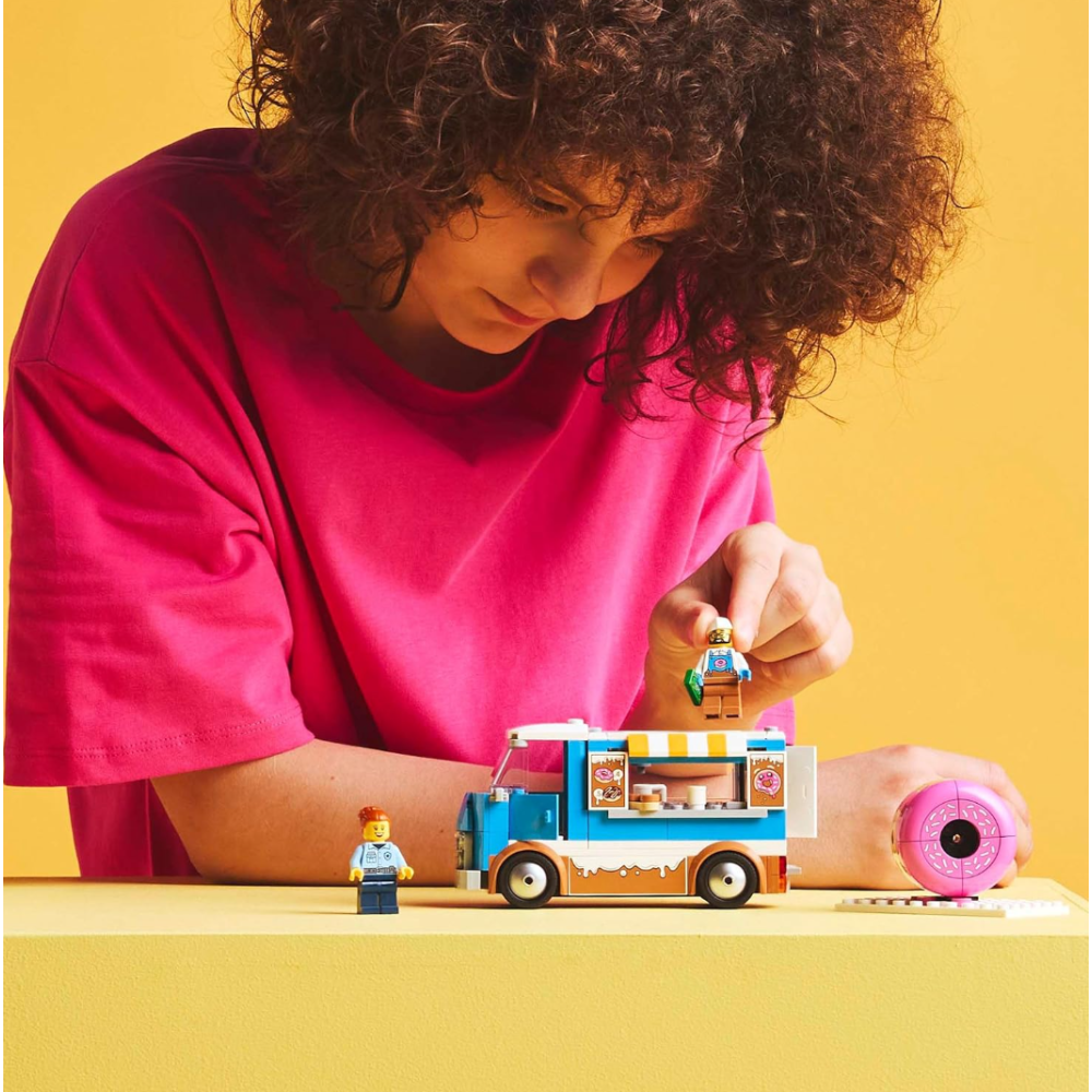 Le food truck de donuts Lego comprenant des pièces variées qui encouragent la créativité et l'interaction sociale - Se présente sous forme de jeu de construction permettant aux jeunes constructeurs d’assembler leur propre food truck et servir des donuts savoureux à leurs amis - Fait travailler l’imagination des joueurs en les incitant à créer des scénarios amusants tout en développant leurs compétences en construction - Dimensions du colis : 13 cm de long, 6 cm de large et 12 cm de haut - Offre la possibilité de jouer à plusieurs.