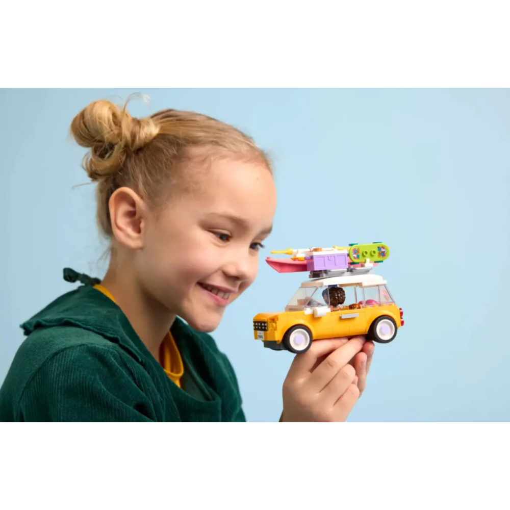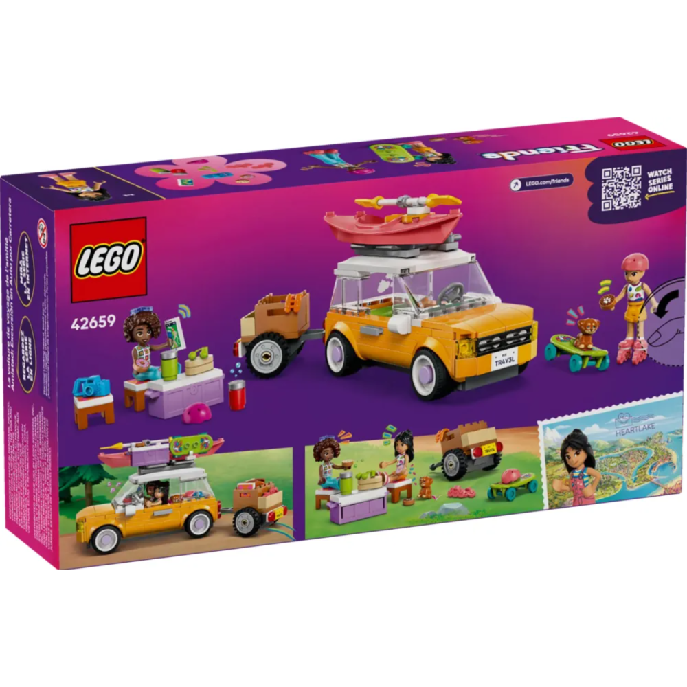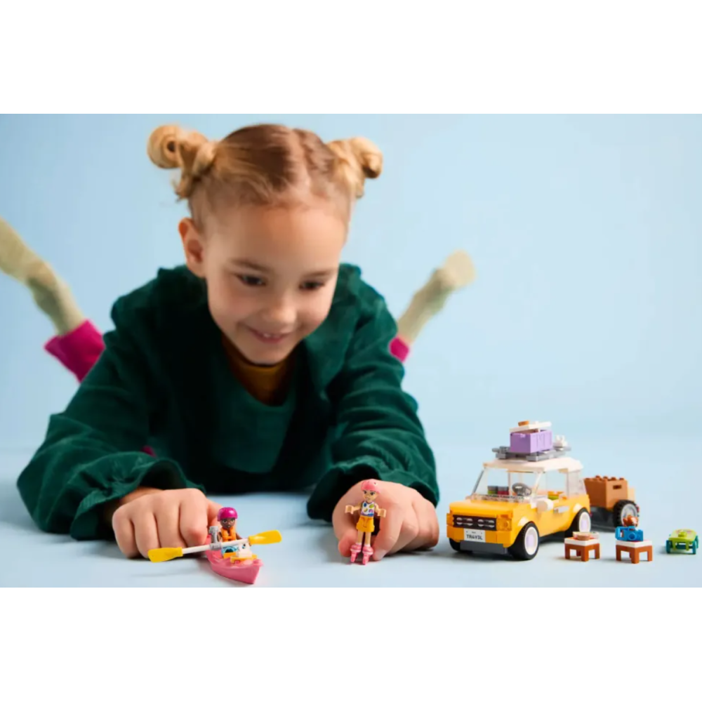 Jeu de construction le voyage en voiture entre amies Lego conçu pour les filles et les garçons âgés de 6 ans et plus - Proposé sous forme de set de construction incluant une voiture et une remorque, 2 mini-poupées lego friends, un adorable chiot - Intègre d’autres accessoires comme un kayak, 2 casques, un skateboard, des rollers, 2 fauteuils et une glacière contenant un sandwich, un donut, un biscuit, des cerises et une friandise pour chien - Constitué de 220 pièces à assembler seul ou en groupe - Favorise l’imagination et éveille la créativité des enfants - Spécialement conçu pour jouer à divers scénarios et éloigner les enfants des écrans modernes.