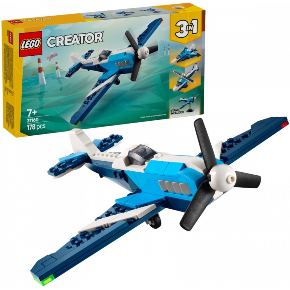 L’avion de course Lego Creator fabriqué pour emporter les jeunes joueurs dans des aventures vers le ciel - Dispose d’une hélice qui tourne à l’avant, de roues mobiles pour se déplacer au sol et d’un support en briques qui permet de l’exposer - Permet de créer jusqu’à 3 incroyables engins avec les 178 pièces fournies : un avion doté d’une hélice qui tourne et de roues mobiles, un avion à réaction ultra-rapide ou un hélicoptère avec une pale rotative - Elaboré pour les jeunes de 7 ans ou plus.