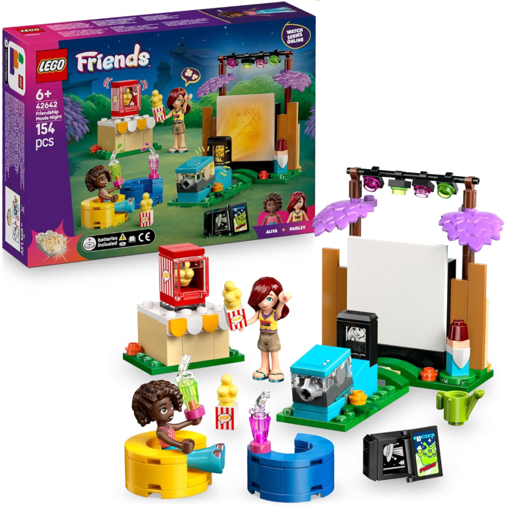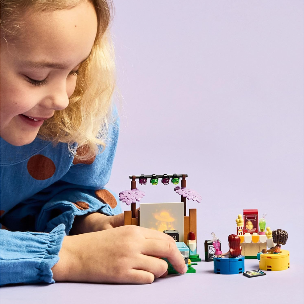 Coffret cinéma Lego composé de 154 pièces proposant aux enfants une aventure de construction intuitive - Indiqué pour les enfants de 6 ans et plus - Conditionné dans une boîte mesurant 4,6 cm de haut, 14,1 cm de long et 19,1 cm de profondeur - Fourni avec les mini-poupées Paisley et Aliya, qui permettent aux enfants d’inventer différentes situations pendant que les amies profitent d’une soirée cinéma dans le jardin de Paisley - Inclut un mini-projecteur avec 2 diapositives, des poufs à construire, 2 boissons, une boîte à pop-corn et une BD pour des soirées cinéma immersives.