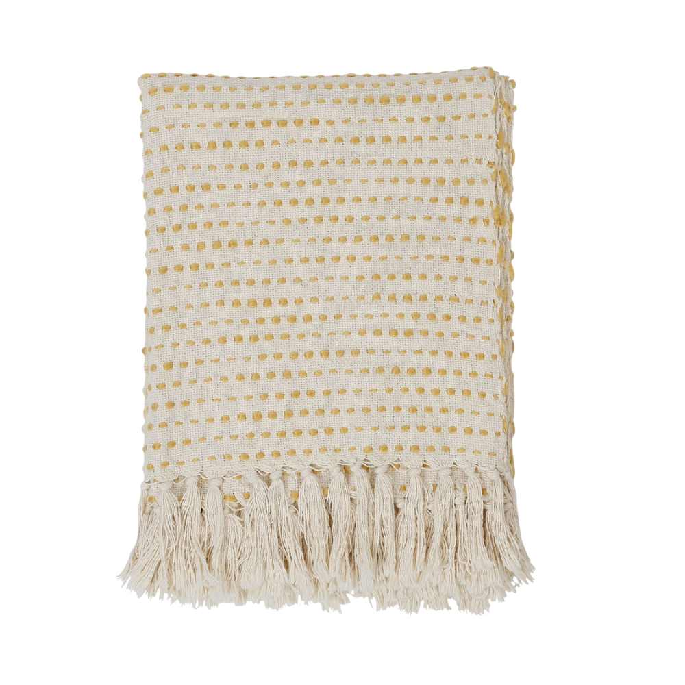 Le Plaid Courba jaune apporte chaleur et luminosité à votre espace avec sa teinte jaune lumineuse et son motif délicatement structuré. Confectionné en coton et acrylique, il offre une douceur agréable au toucher, tout en étant robuste et facile à entretenir. Ses dimensions généreuses de 170 × 130 cm en font un choix idéal pour habiller un canapé, recouvrir un fauteuil ou être posé au bout d’un lit. Le design sobre avec des détails subtils permet de le marier à divers styles de décoration. Sa présence dynamique et raffinée contribue à créer une ambiance accueillante et pleine de vie.