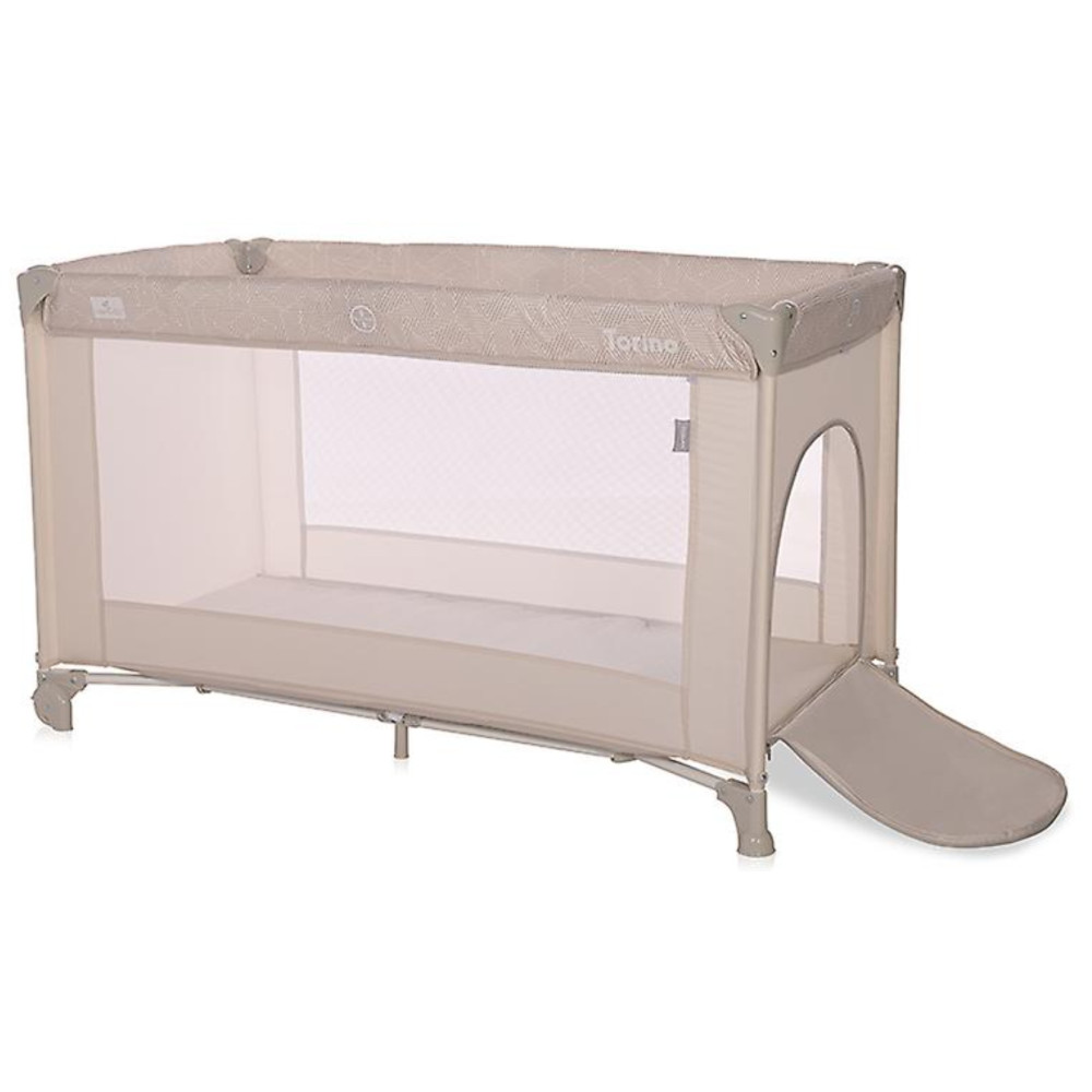 Torino avec porte latérale, nacelle et matelas pliable : convient dès la naissance, un seul niveau, poids maximum jusqu'à 15 kg, montage et démontage faciles, matelas pliable inclus, nacelle avec porte latérale zippée, grande fenêtre de surveillance pour garder un œil sur votre enfant, pour se reposer et jouer, système de pliage double sécurité, peut également servir de parc. Poids du lit parapluie : 7 kg, Matière : 100 % polyester, Dimensions du produit : L 127 x l 65 x H 75 cm, Dimensions plié : L 75 x l 21 x H 21 cm, Dimensions du carton : L 77 x l 23 x H 21 cm, Poids à la livraison : 9 kg.