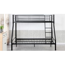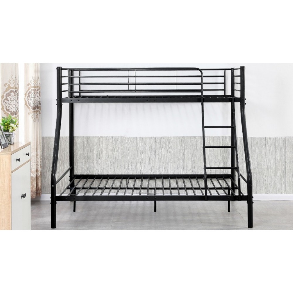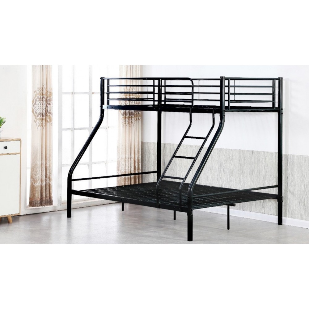 Lit superposé 2 places 1 place noir - lits superposés - structure en métal laqué époxy - coloris : noir - dimensions couchage du haut 90 x 190 cm - dimensions couchage du bas : 140 x 190 cm - sommiers inclus - livré sans matelas - dimensions totales : l198,2 x 146,5 x 163 cm.