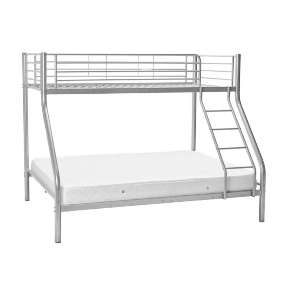 Lit superposé 2 place + 1 place - Couleur gris - Structure en métal laqué époxy - Dimensions couchage du haut 90 x 190 cm - Dimensions couchage du bas : 140 x 190 cm - Sommiers inclus - Structure et cadre en métal finition gris  - Echelle et barrière de sécurité - Ce lit ne convient pas pour les enfants de moins de 6ans - Conforme aux exigences de sécurité des normes en vigueur - 1+2  haut 100kg bas 200kg - Dimensions totales : L198,2 x 146,5 x 163 cm - Livré sans matelas.