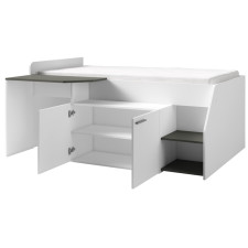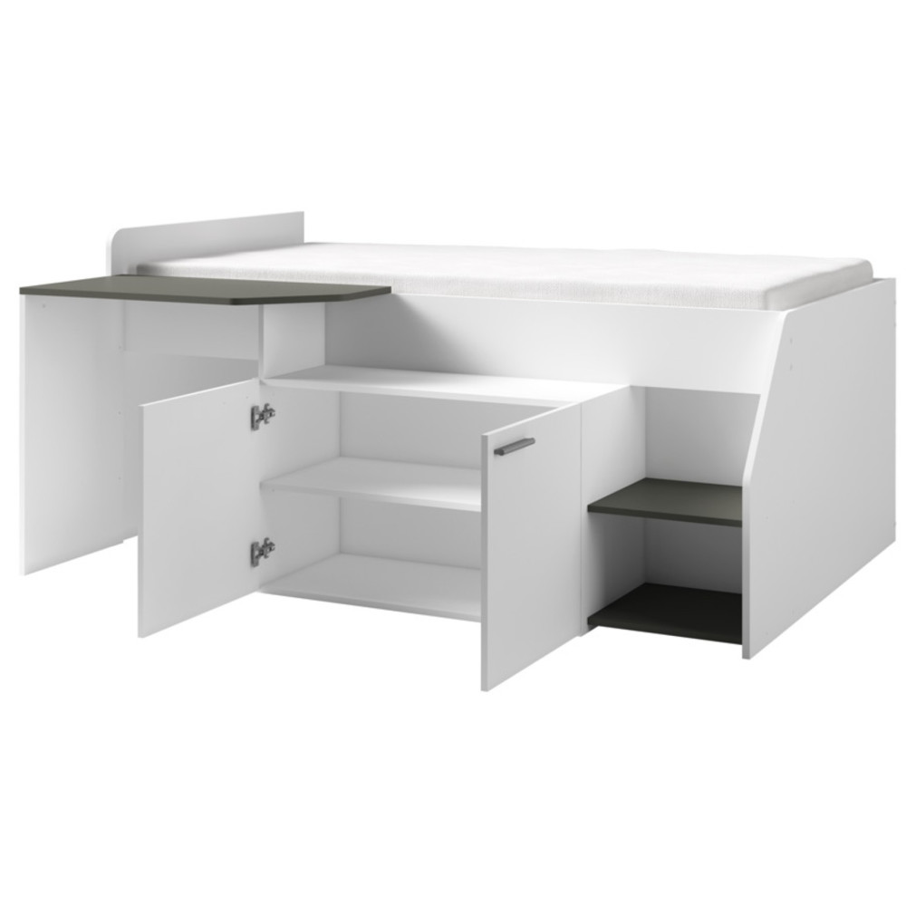 Lit  avec bureau intégré et rangements multi - Coloris : blanc - Dimensions : 200 × 90 cm.