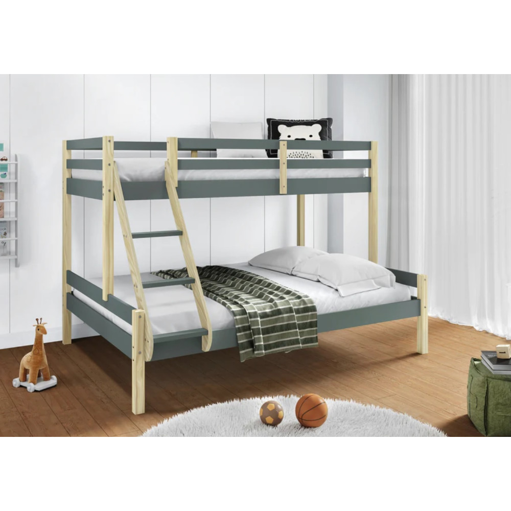 Lit superposé en pin : Dimensions : 202x156.4x142 cm, matelas non compris (190x90cm et 140x190cm). Coloris : bleu gris.