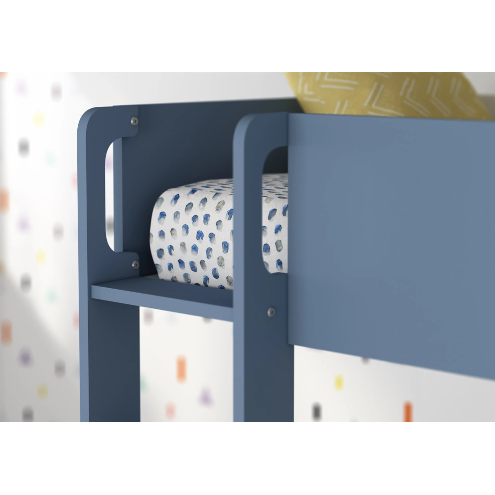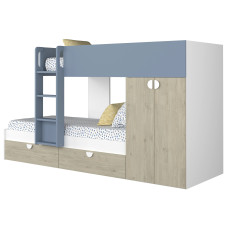 Lit superposé en pin : Dimensions : 202x156.4x142 cm, matelas non compris (190x90cm et 140x190cm). Coloris : bleu gris.
