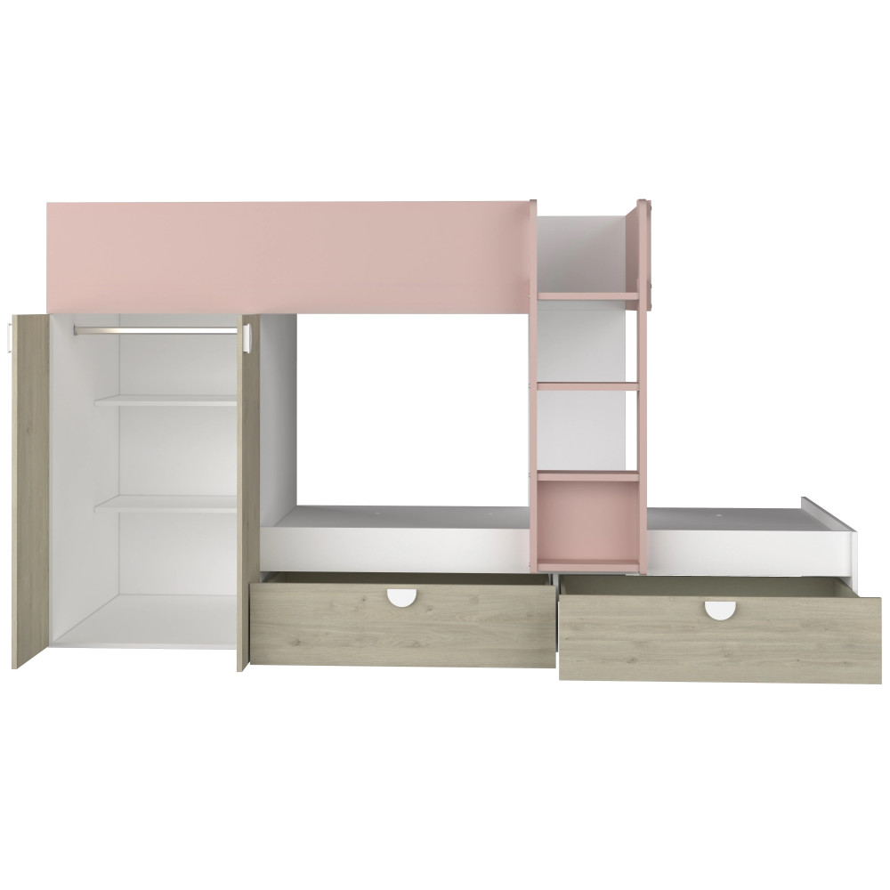 Cette chambre vous permettra de gagner de la place en ayant toujours ce qu’il vous faut à portée de main grâce aux nombreux rangements proposés - Lit 1 place avec armoire 4p blanc rose d134-10 - Dimensions : 158x216xH200cm