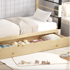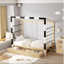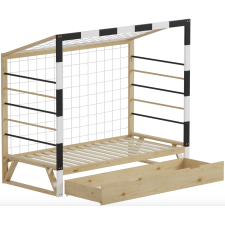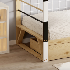 Lit foot A-02 avec 90x190cm - Structure en pin massif, coloris naturel / blanc - Vendu avec sommier - Matelas non inclus - Dimensions : 93,5 x 202 x H145 cm.