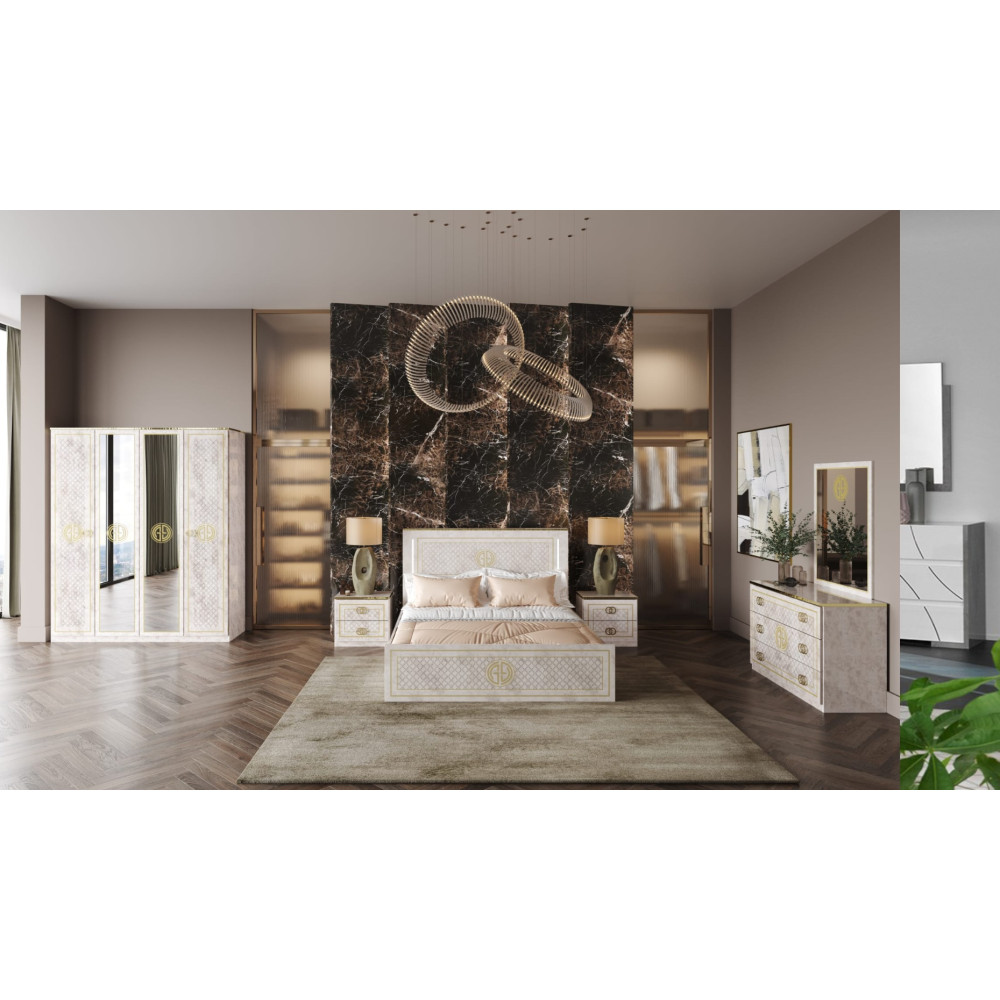 CHAMBRE A COUCHER COMPLETE GUJI 160X200 EFFET MARBRE DORE