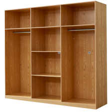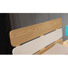 Chambre DZ19 composée d'un avec coffre dimension s160cm, 1 table de chevet, 1 armoire à 6 portes. Coloris: effet bois clair et blanc -