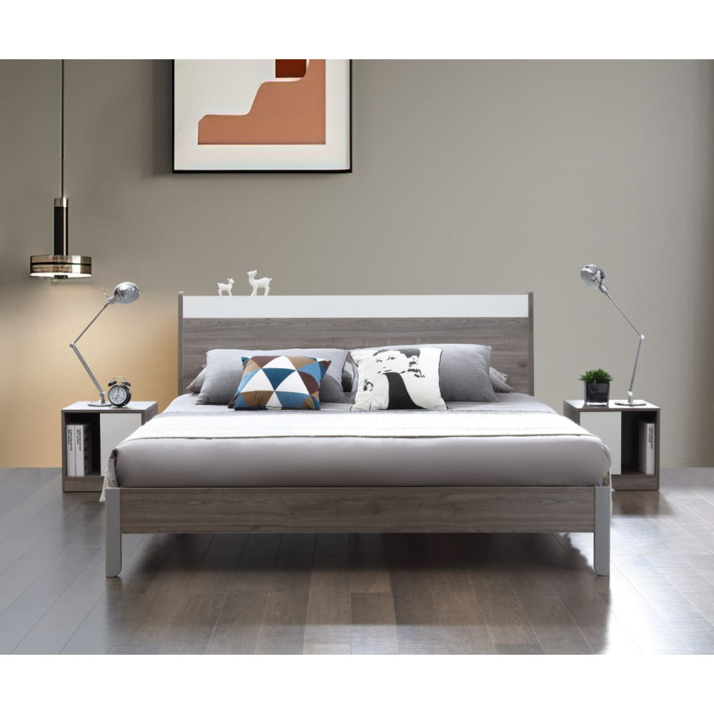 Lit double DZ33A- Dimensions: 160X200 cm. Coloris blanc gris.