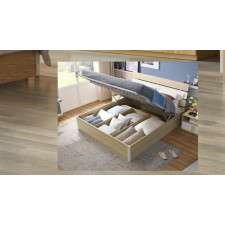 Lit coffre DZ19- Dimensions: 160X200. Coloris: effet bois clair et blanc.