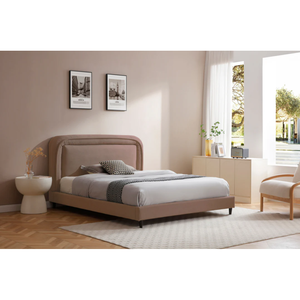 Le lit 160x200 couleur light brown apporte une touche chaleureuse et élégante à votre chambre. Son revêtement en tissu microfibre épais, doux au toucher, crée une ambiance cosy tout en offrant une bonne résistance à l’usage quotidien. La tête de lit rembourrée assure un excellent confort pour vos moments de détente. Sa structure solide en panneaux de particules garantit stabilité et durabilité. Vendu avec sommier intégré, ce lit offre un soutien optimal pour un sommeil de qualité. Son design moderne s’adapte facilement à tous les styles d’intérieur. Lit vendu sans matelas, idéal pour personnaliser votre couchage selon vos préférences.