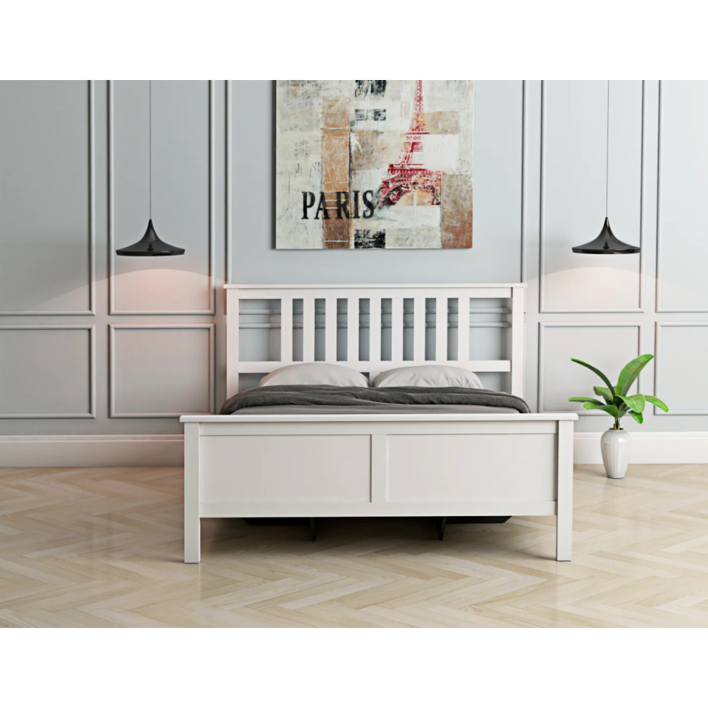 Lit Willy conçu avec une structure solide et durable de couleur blanche - Propose une hauteur basse de 1018 cm qui convient même pour les jeunes enfants - Peut accueillir un matelas de 140 x 190 cm - Dimensions : 1525 cm de long et 2013 cm de large - Dispose d’une base intégrée pour stabiliser le sommier et le matelas en permanence - Constitué d’une tête de lit simpliste affichant 9 mini barres verticales au centre de la tête de lit - Convient pour tout type de chambre.