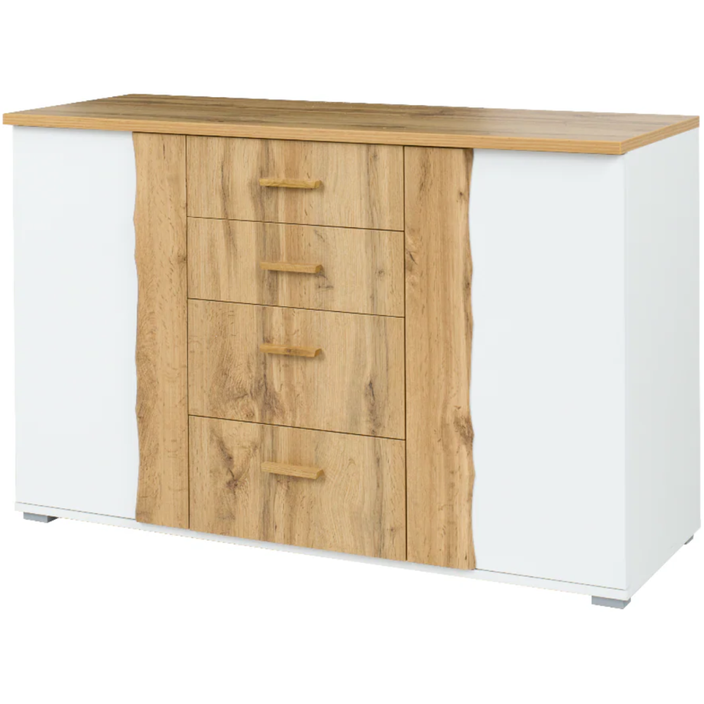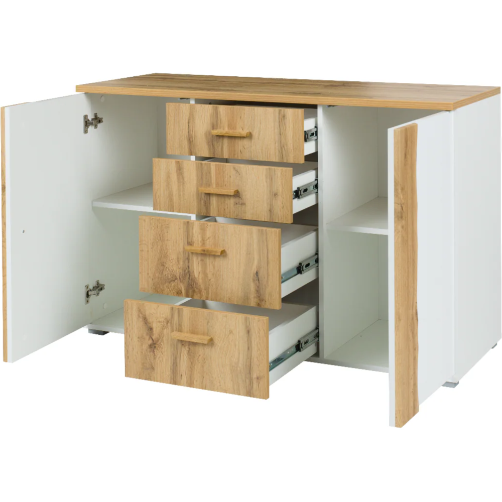 Lit BIANCA MH 4903 DS14 - 140x190 - Sommier inclus - Structure en panneau de particules recouvert de papier de coloris blanc / summer oak.