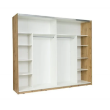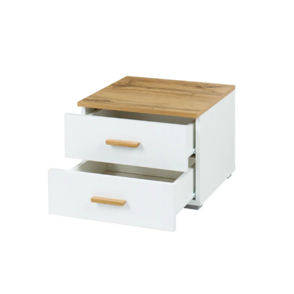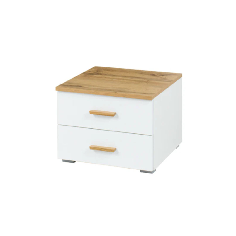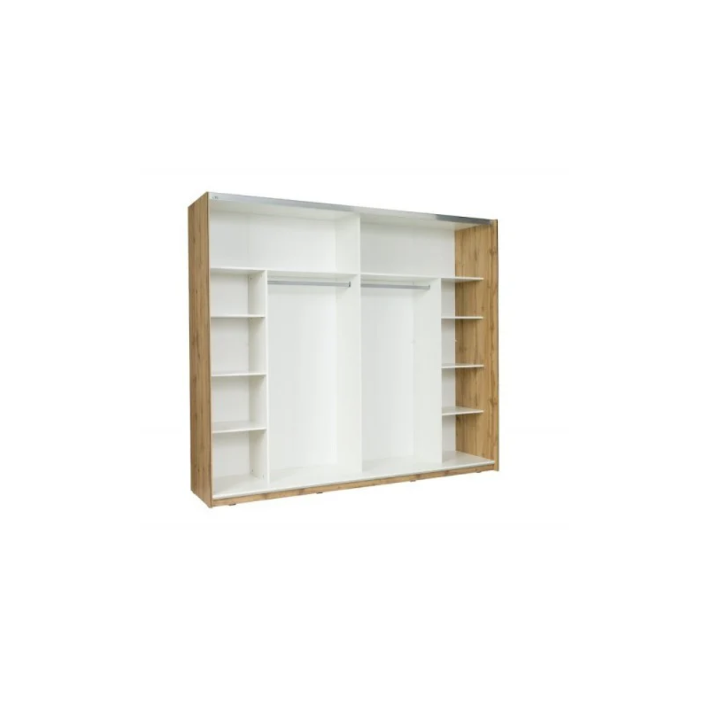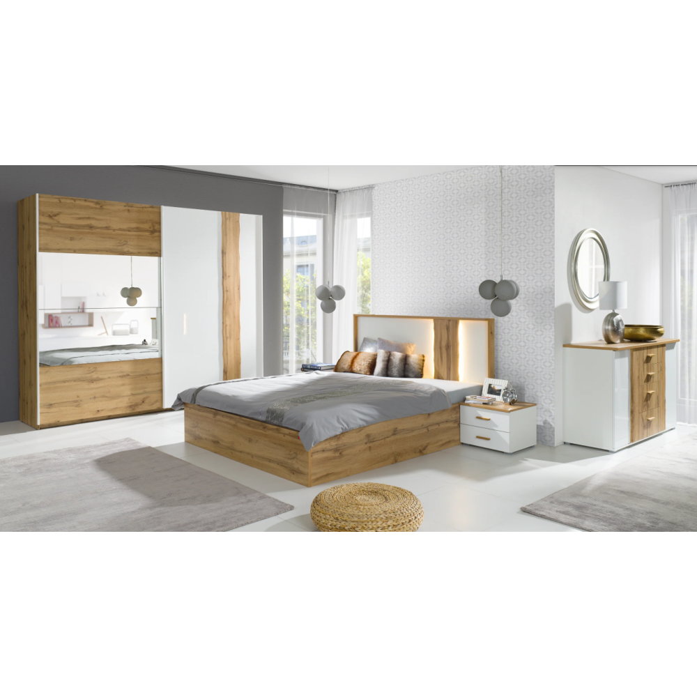 Chambre complète 3 places WOOD élégance chêne et blanc avec Led - Comprend un lit 180x200 cm, une commode, 2 tables de chevet et une armoire 2 portes avec miroir - Chambre harmonieuse et épurée - Choix idéal pour ceux qui recherchent à la fois le style et la fonctionnalité dans une chambre à coucher.