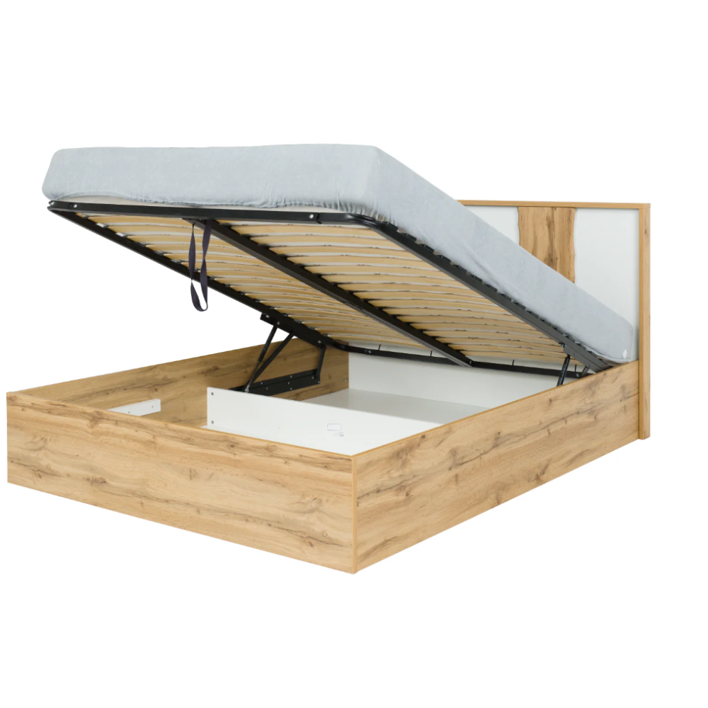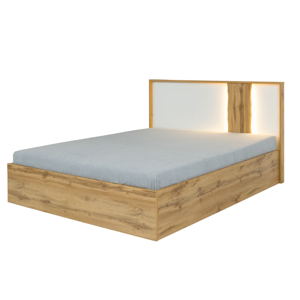 Lit en bois Zyta, dimensions: 160 × 200 cm. Coloris: bois clair- blanc.