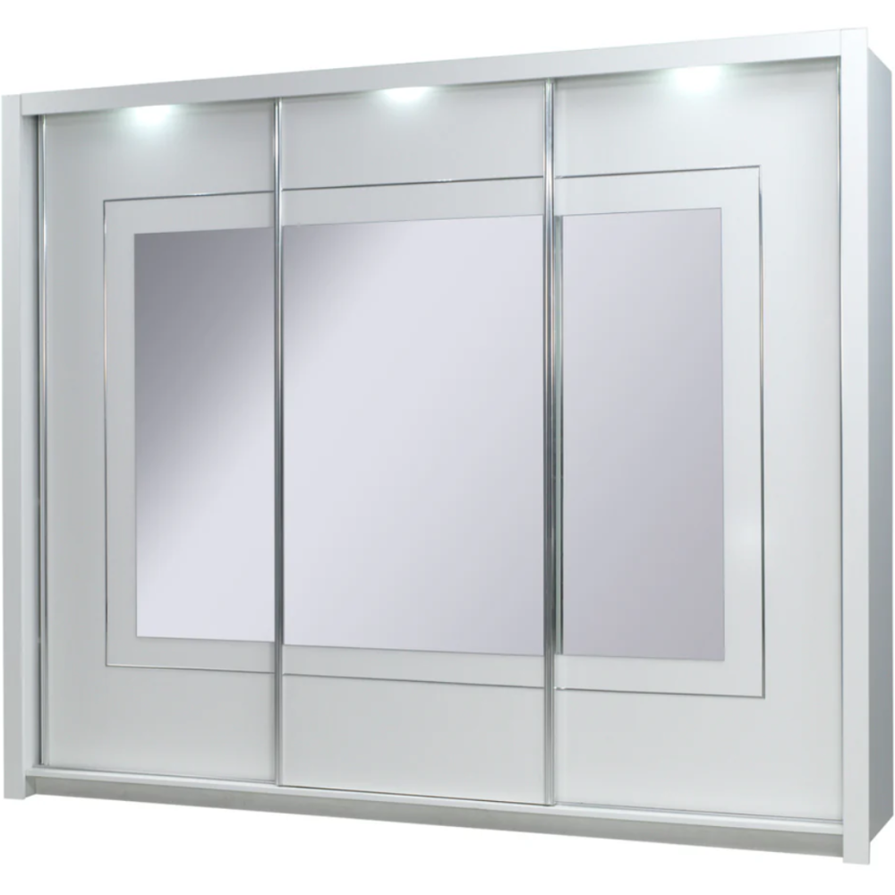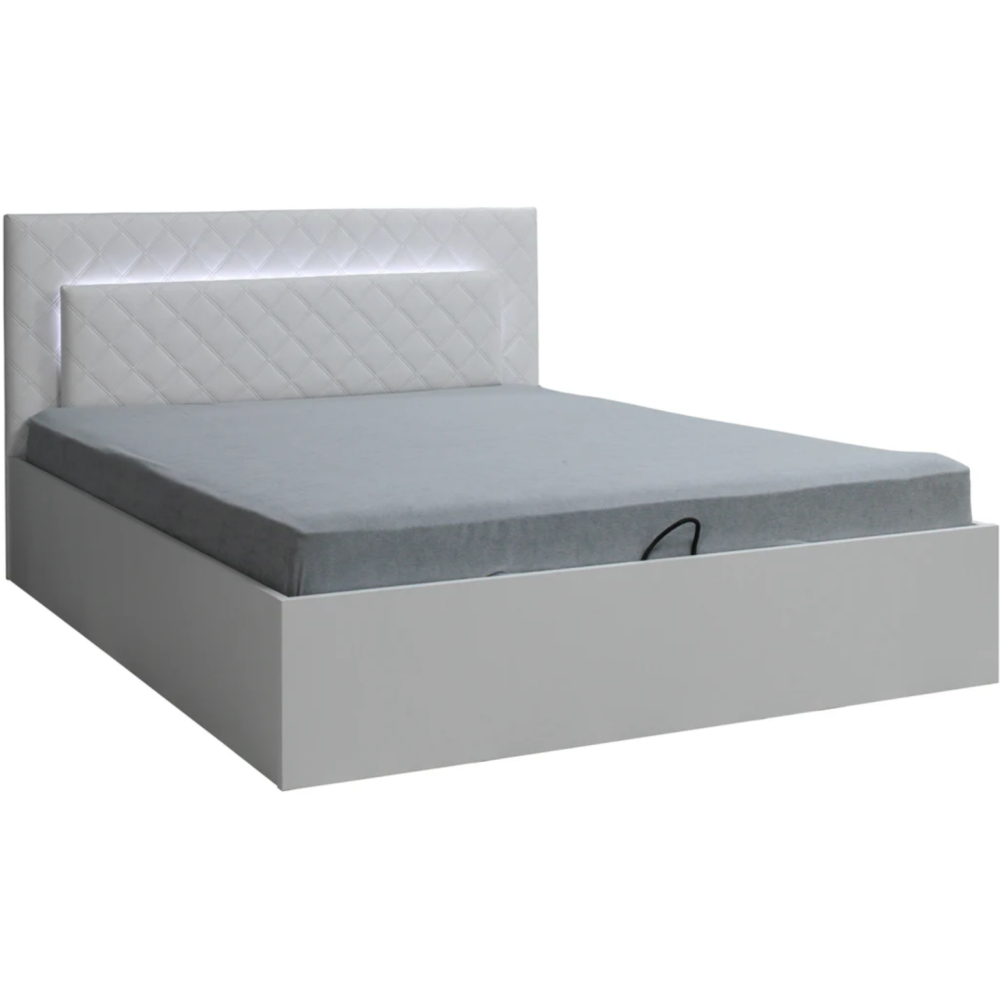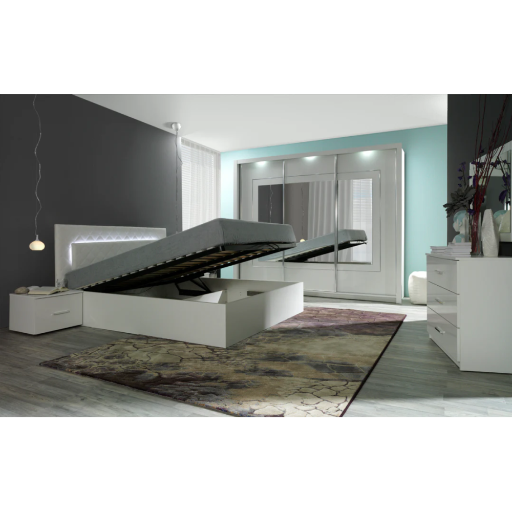 Chambre complète Panarea avec son coloris blanc brillant en façade et blanc mat de corps transformera votre chambre en un véritable cocon de détente - Bénéficie d'un design élégant et moderne qui apporte confort et style à votre espace de repos - Est composée d'un lit adulte de dimensions 160x200 cm avec coffre et Led, de 2 chevets, d'une commode et d'une armoire avec Led.