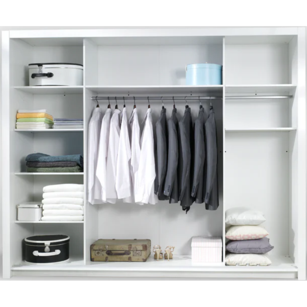 Cette chambre vous permettra de gagner de la place en ayant toujours ce qu’il vous faut à portée de main grâce aux nombreux rangements proposés - Lit 1 place avec armoire 4p blanc rose d134-10 - Dimensions : 158x216xH200cm
