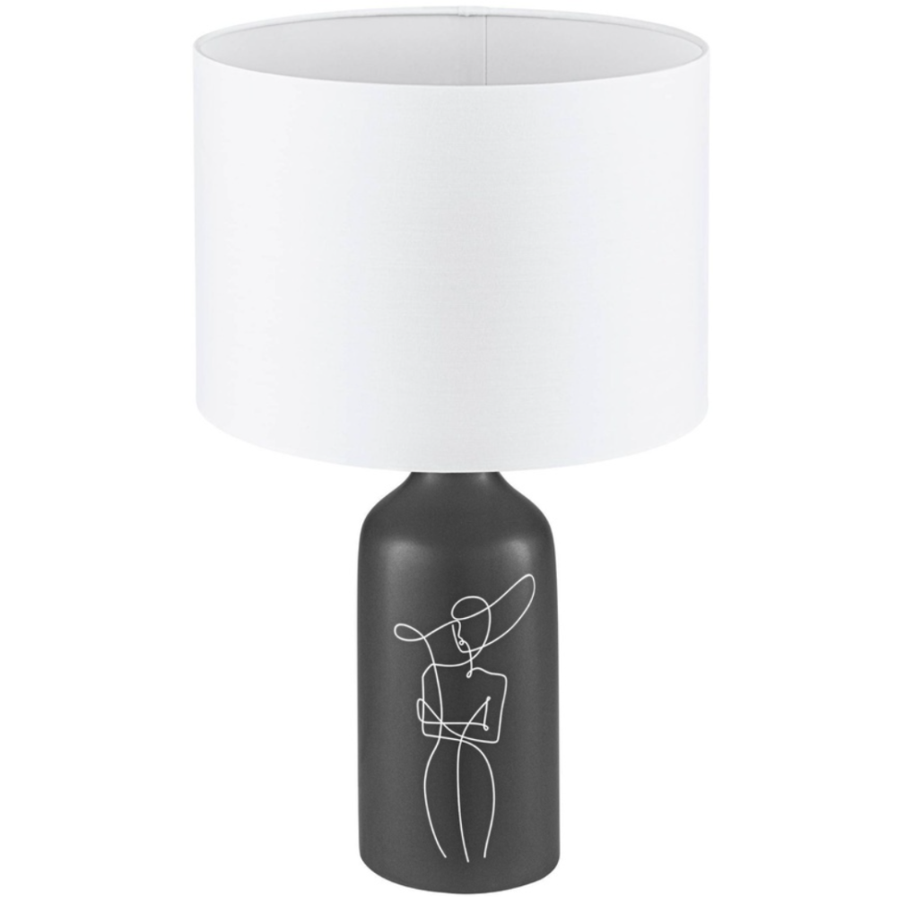 Lampe de table Vinoza - Coloris : Noir et blanc - Facile à allumer et éteindre via un interrupteur installé sur son câble - Dispose d'un abat-jour rond en tissu noir et une base en céramique blanche avec une silhouette féminine dessus - S'intègre avec style dans la chambre sur la table à chevet, dans le salon sur le rebord de la fenêtre ou dans le hall d'entrée sur le buffet - Convient à toutes les ampoules à culot E27 maximum 40 watts - Dimensions : 53.5 et 30 cm de Ø diamètre.