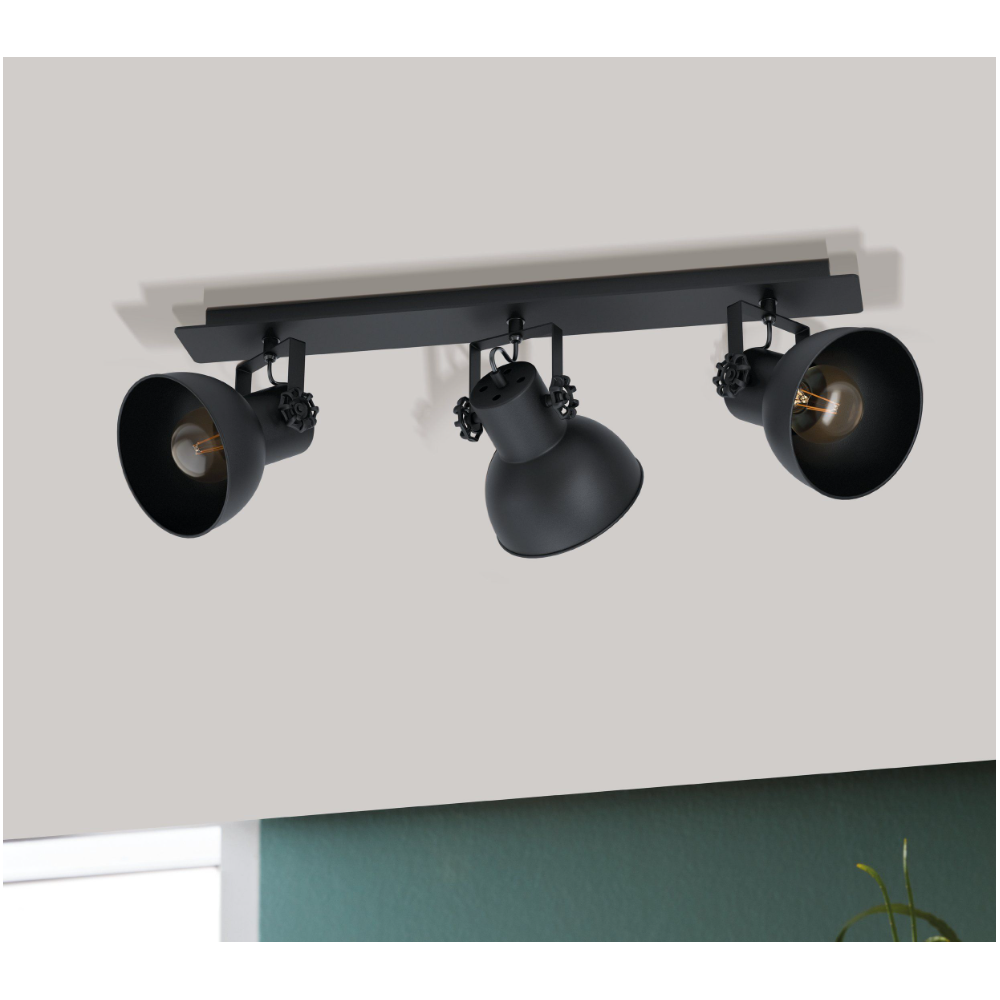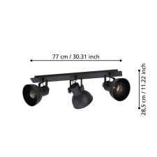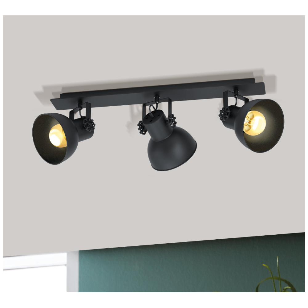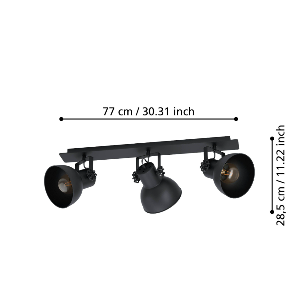 Fabriqué en métal noir avec trois têtes d’éclairage noires mobiles, le plafonnier BARNSTAPLE 1 complète parfaitement les intérieurs modernes. Grâce à ses têtes d’éclairages mobiles, ce plafonnier est optimal pour toutes les pièces, qu’il s’agisse de la cuisine, du salon, de la chambre, du couloir ou de la salle à manger. Les ampoules à filament représentées ne sont pas fournies. Le luminaire est compatible avec n’importe quelle ampoule E27. Classe de protection: 1. Tension secteur: 220-240V,50/60Hz. Tension de service: 220-240V,50/60Hz.