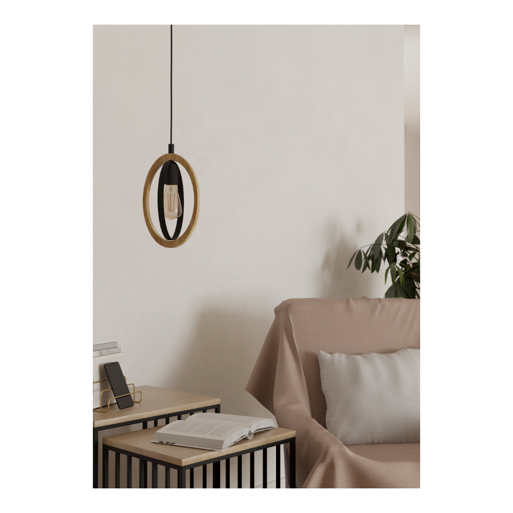 LAMPE SUSPENDUE BASILDON 40W E27 NOIR ET BOIS
