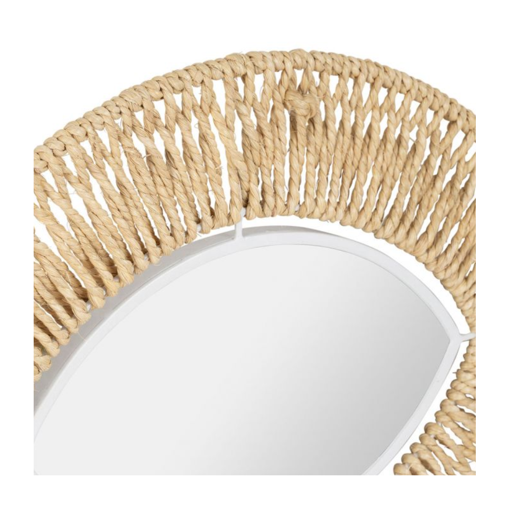 Miroir en forme d'œil - Couleur : naturel - Dimensions : 42x32 cm - Matériau : fer, jute, verre.