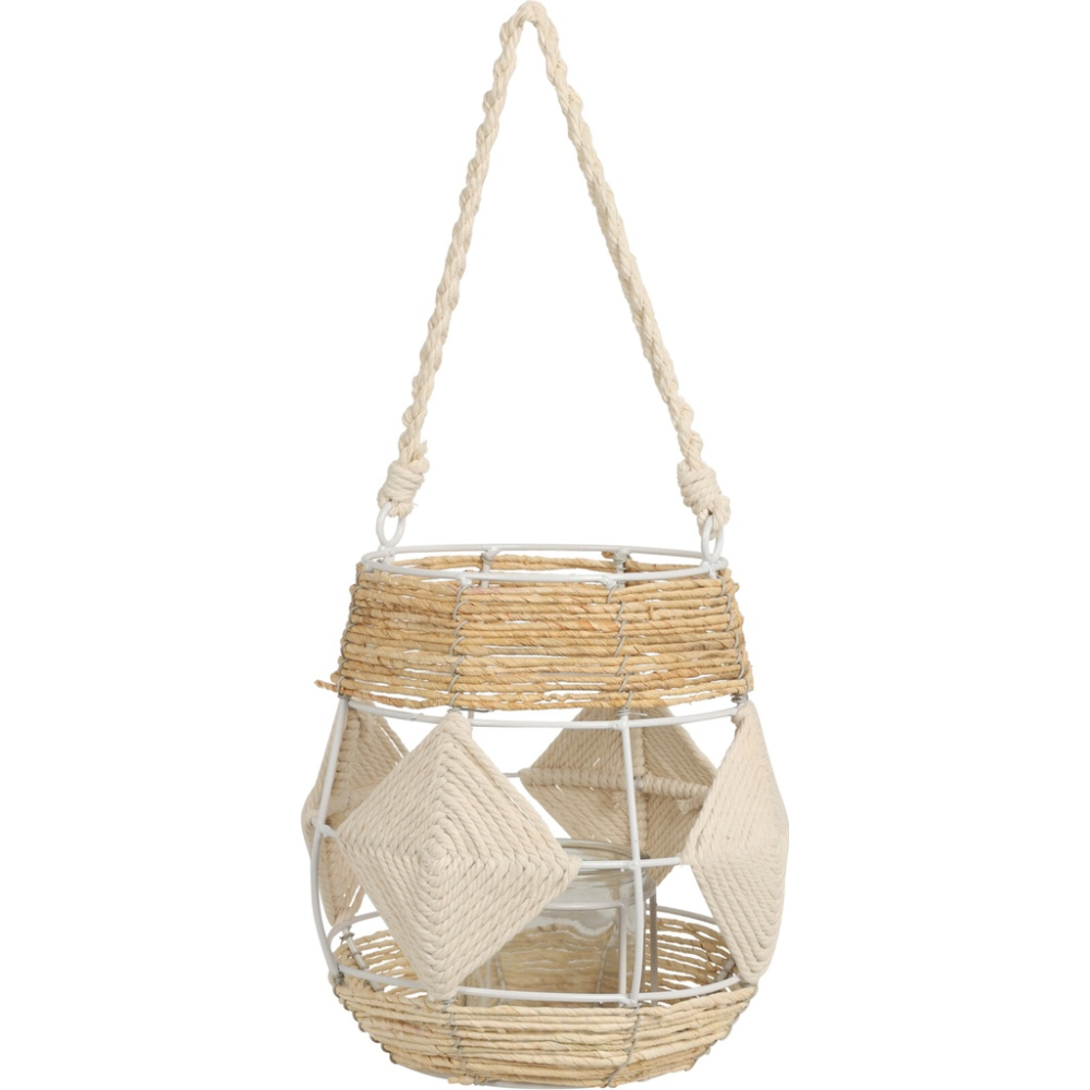 Lanterne décorative au style bohème tendance, montée sur une structure en métal. Idéale pour les salons, les chambres, les terrasses ou les balcons, elle crée une atmosphère unique. Son design naturel apporte chaleur et confort. Fabriquée en métal et tressée avec un cordon en jonc de mer naturel, cette lanterne ravira les amateurs d'éco-conception.