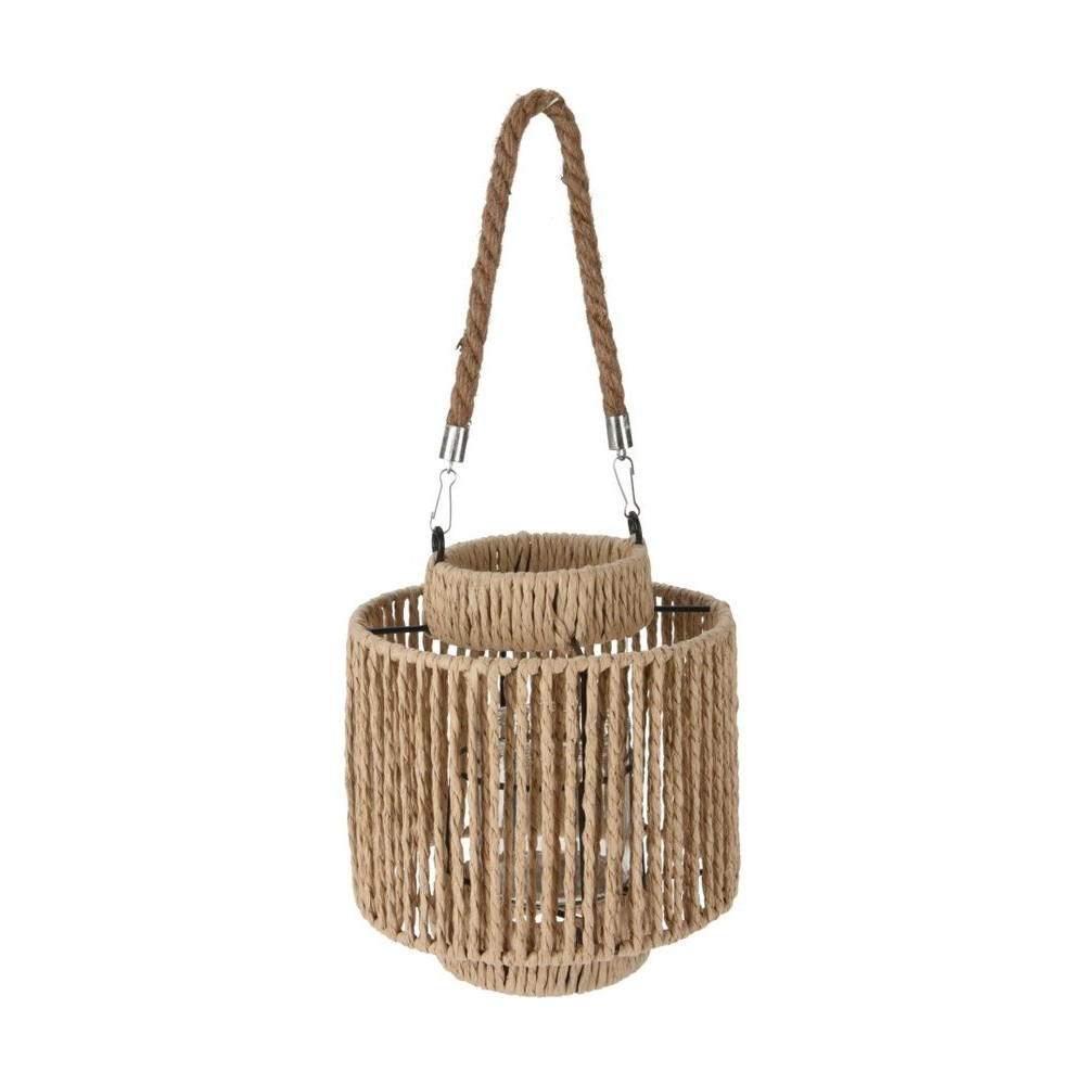 Lanterne décorative au style bohème tendance, montée sur une structure en métal. Idéale pour les salons, les chambres, les terrasses ou les balcons, elle crée une atmosphère unique. Son design naturel apporte chaleur et confort. Fabriquée en métal et tressée avec un cordon en jonc de mer naturel, cette lanterne ravira les amateurs d'éco-conception.