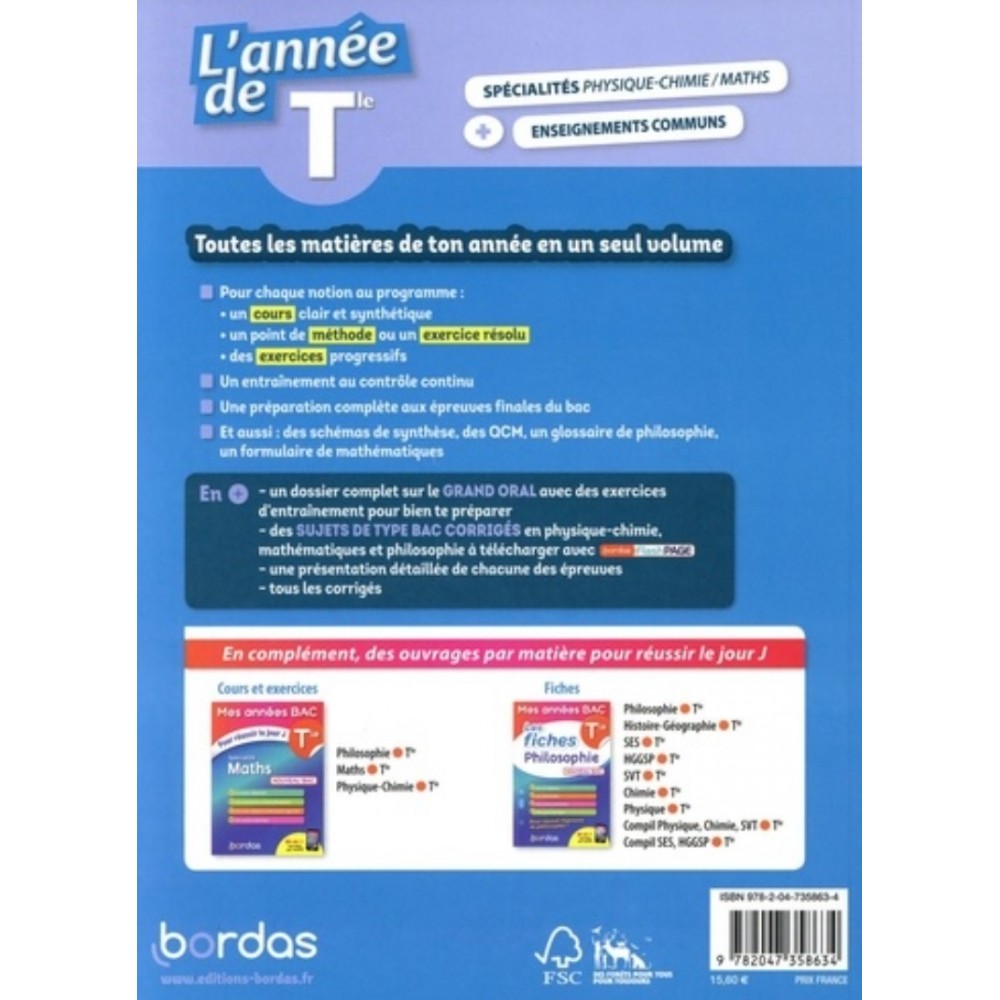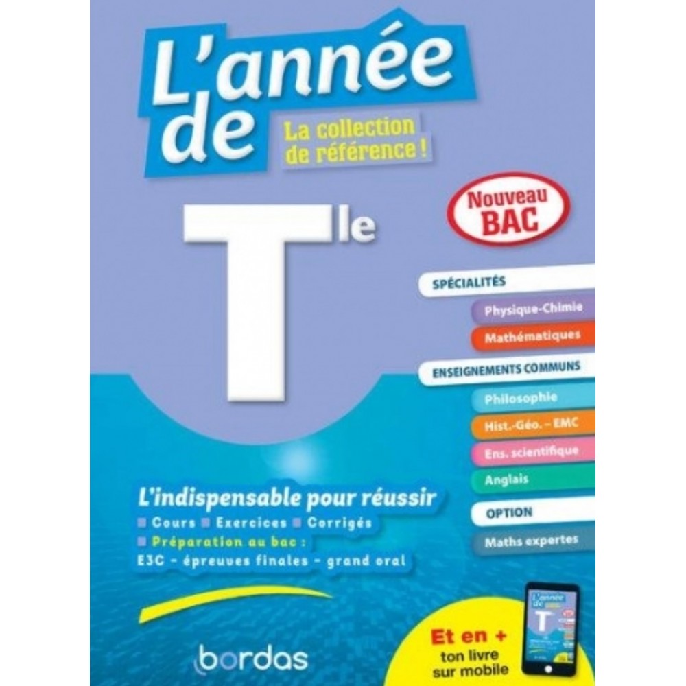 L'Année de : une collection de référence pour réviser toutes les matières et réussir son BAC 2021. Conçu et rédigé par des enseignants, L'Année de Terminale spécialités Maths et Physique-Chimie est conforme au nouveau bac. Cet ouvrage de préparation aux épreuves du nouveau baccalauréat propose du cours, de la méthode et des exercices variés pour les enseignements communs et les spécialités (Maths, Physique-Chimie).