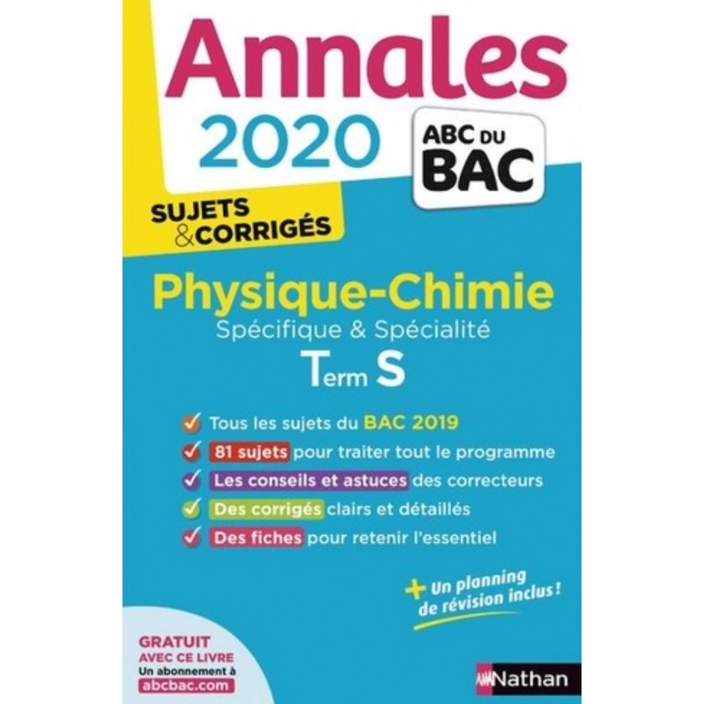 Tous les sujets du BAC 2019.55 sujets pour traiter tout le programme. Les conseils et astuces des correcteurs. Des corrigés clairs et détaillés. Des fiches pour retenir l'essentiel.+ Rédigé par des enseignants ! + Annales ABC du Bac 2020 Histoire-Géographie Terminale S. Conforme aux programmes du Bac. Des sujets sur tout le programme. Les sujets complets du Bac 2019 et des sessions antérieures. Tous les corrigés détaillés avec des rubriques d'aide. Un minutage pour se mettre dans les conditions de l'épreuve. La méthode gagnante pour préparer le BAC.