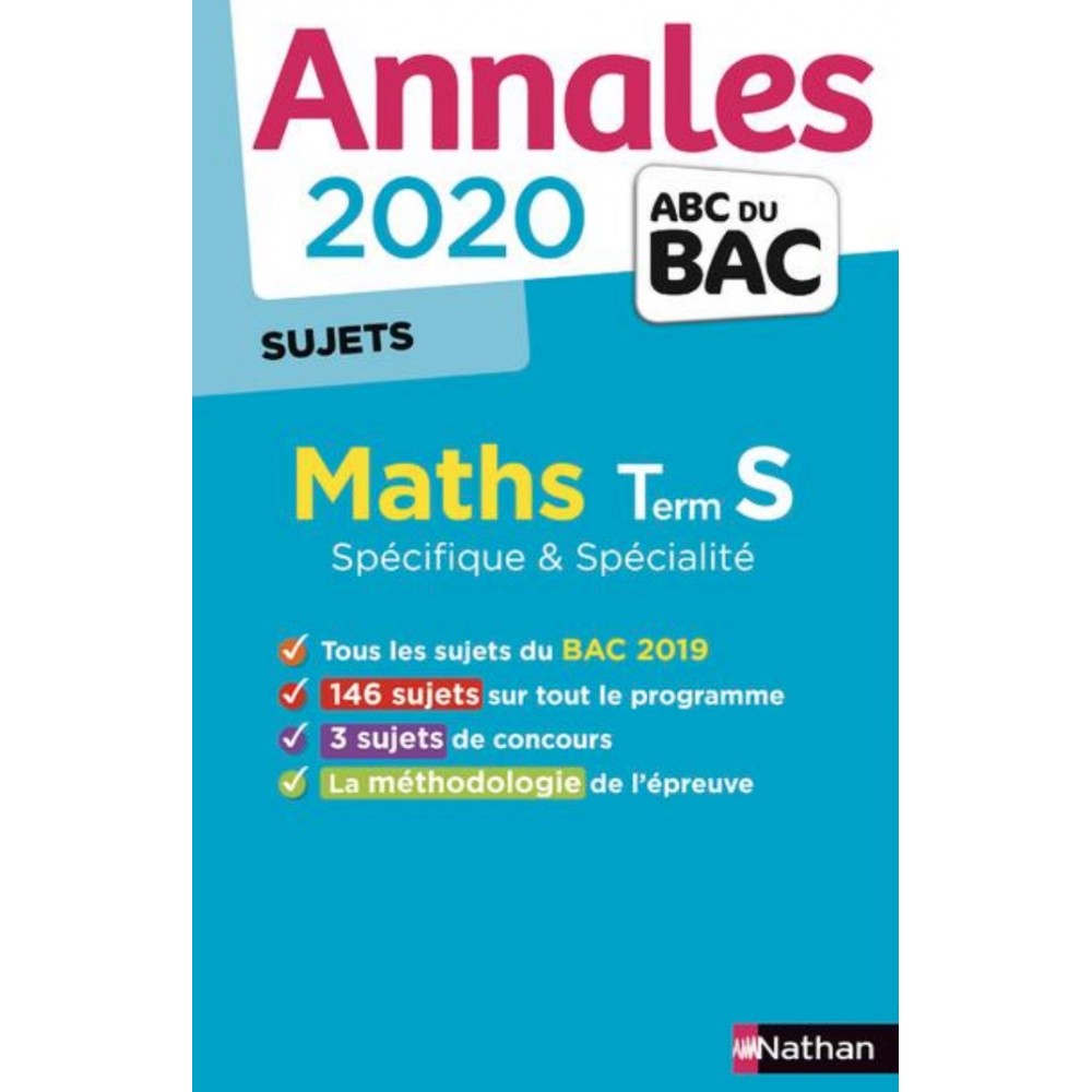 Tous les sujets du BAC 2019. 112 sujets pour traiter tout le programme. Le sujet du concours général. La méthodologie de l'épreuve.+ Rédigé par des enseignants ! + Annales ABC du Bac 2020 Maths Terminale S - Non Corrigé. Conforme aux programmes du Bac. Des sujets sur tout le programme. Les sujets complets du Bac 2019 et des sessions antérieures. Le sujet du Concours général. Un minutage pour se mettre dans les conditions de l'épreuve. La méthode gagnante pour préparer le BAC. L'épreuve expliquée et les critères d'évaluation. Les conseils pratiques des correcteurs.