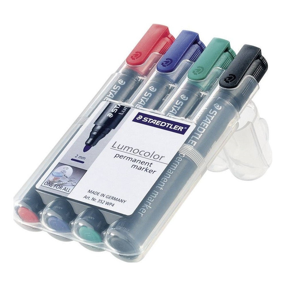 Marqueur permanent STAEDTLER Lumocolor - pointe biseautée extra large environ 2 à 12 mm. Peut être laissé ouvert pendant des jours sans dessécher (test ISO 554) excellent antitache et imperméable sur presque toutes les surfaces idéal pour le carton, le bois, le cuir, le verre, les plastiques et presque toutes les surfaces peintes. Résistant à la lumière (noir, bleu, vert sur 5 ans), noir, vert sur papier sur 10 ans. Les couleurs noir et vert sont résistantes aux intempéries. Couleur intense, faible odeur, pointe bloquée sans xylène avec clip. La tige et le capuchon en PE en PP garantissent une longue durée de vie. Rechargeable avec flacon 485 23.Couleur : bleu.