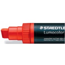 Marqueur permanent STAEDTLER Lumocolor - pointe biseautée extra large environ 2 à 12 mm. Peut être laissé ouvert pendant des jours sans dessécher (test ISO 554) excellent antitache et imperméable sur presque toutes les surfaces idéal pour le carton, le bois, le cuir, le verre, les plastiques et presque toutes les surfaces peintes. Résistant à la lumière (noir, bleu, vert sur 5 ans), noir, vert sur papier sur 10 ans. Les couleurs noir et vert sont résistantes aux intempéries. Couleur intense, faible odeur, pointe bloquée sans xylène avec clip. La tige et le capuchon en PE en PP garantissent une longue durée de vie. Rechargeable avec flacon 485 23.Couleur : noir.