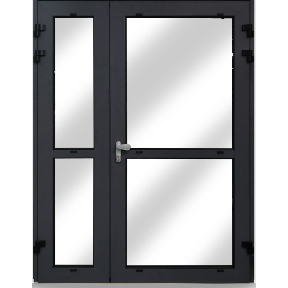 Porte 2 battements en aluminium, vitrée doublée. Dimension: L150Xh215 6mm. Coloris: blanc.
