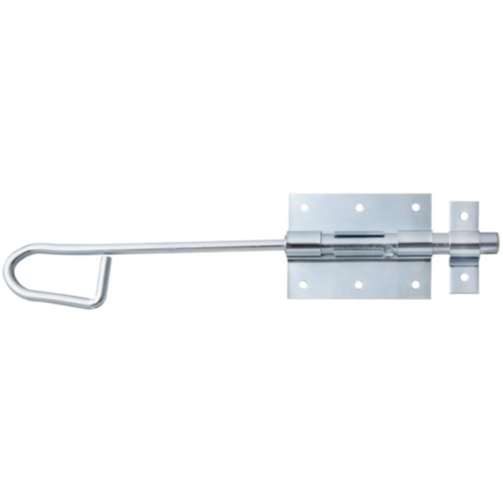 Verrou baïonnette avec gâche attachée - Marque : GAH ALBERTS - Référence fournisseur : 137243 - Matériau : Acier brut, zingué - Dimensions : Longueur totale : 300 mm, Longueur de la platine : 90 mm, Largeur de la platine : 67 mm, Diamètre du boulon : 13,5 mm, Largeur de la boucle : 18 mm, Longueur de la boucle : 61 mm, Longueur d'extension : 41 mm - Nombre de trous : 8 - Diamètre des trous : 5 mm.