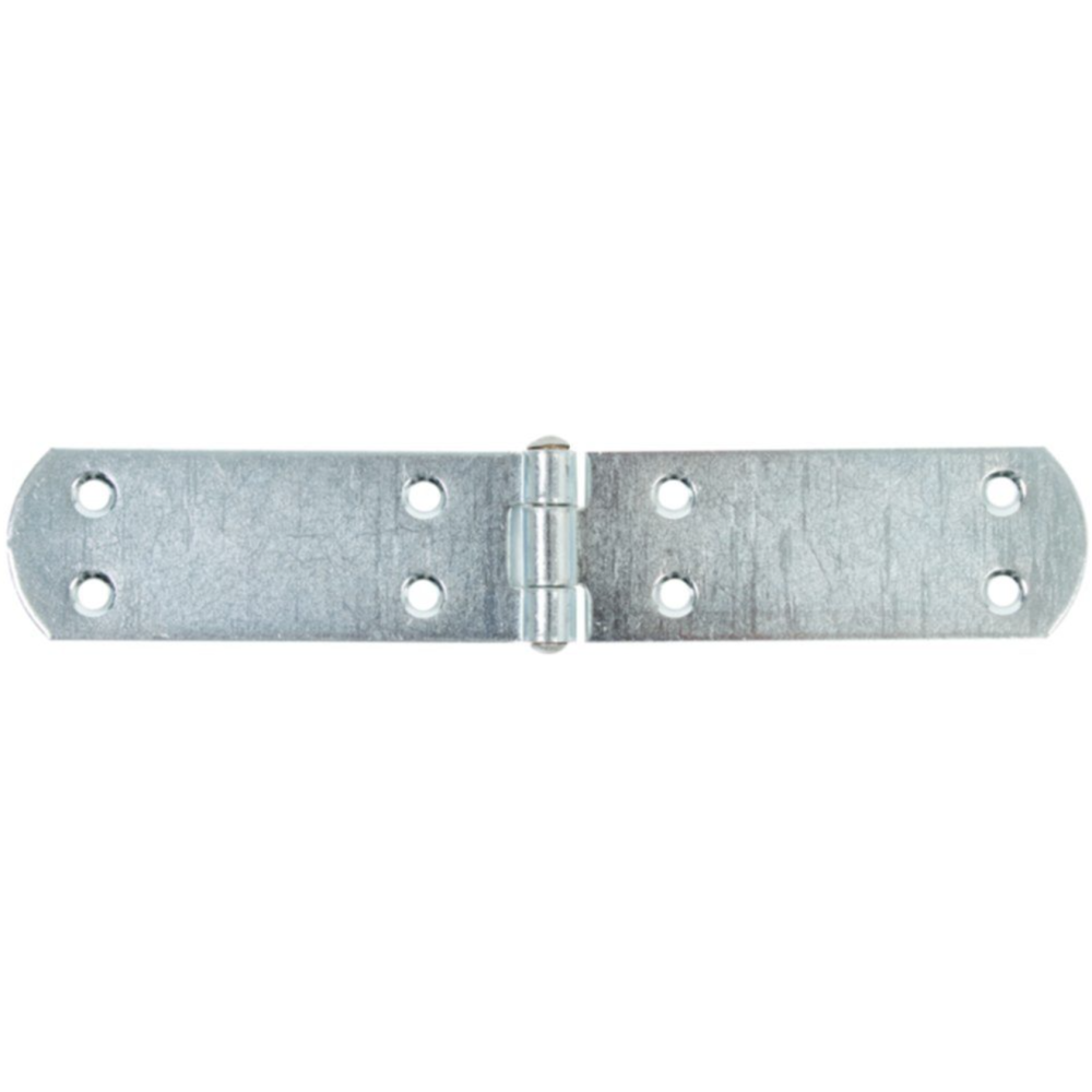 Charnière de malle ALBERTS 315504 - Acier brut zingué - Goupille rivetée - Longueur : 195 mm - Largeur : 35 mm - Épaisseur : 2 mm - 8 trous fraisés - Diamètre des trous : 5,5 mm - EAN : 4004338315504.