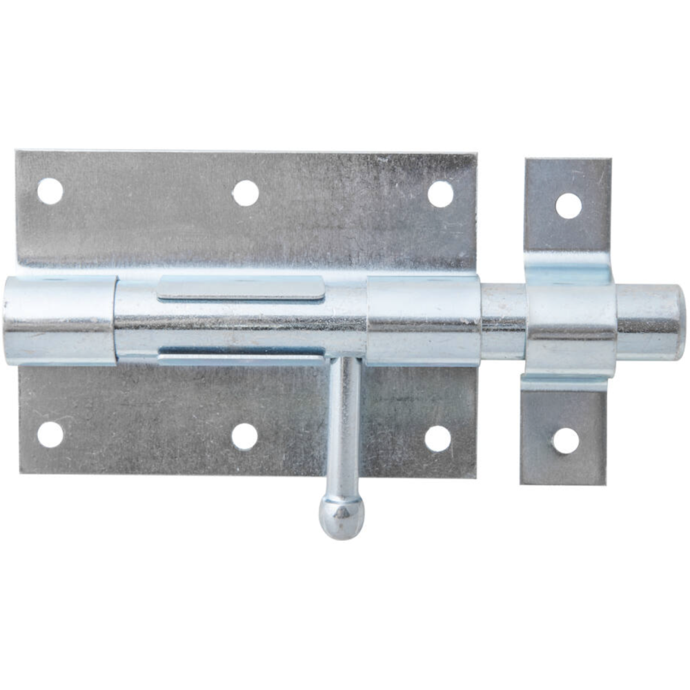 Verrou de box à bouton avec gâche attachée - Marque : ALBERTS - Matière : Acier brut, finition zinguée - Longueur totale : 135 mm - Platine : 95 mm (L) x 67 mm (l) - Boulon : Ø 15,5 mm - Gâche : 67 mm (L) x 18 mm (l) - Longueur d’extension : 43 mm - 8 trous de fixation (Ø 5 mm) - Type : verrou box baïonnette - Dimensions produit : 13,5 x 30 x 8 cm - Poids : 0,29 kg - EAN : 4004338137052.