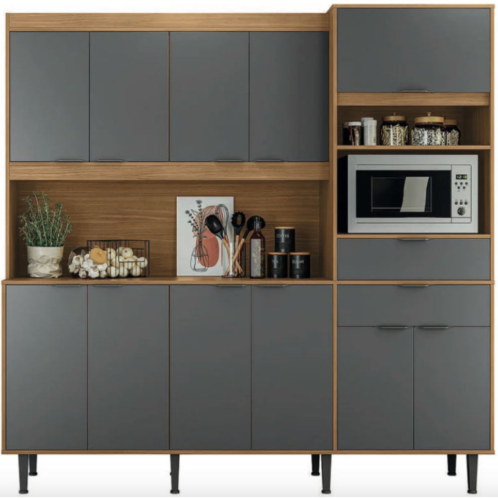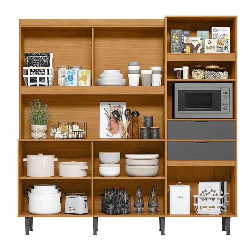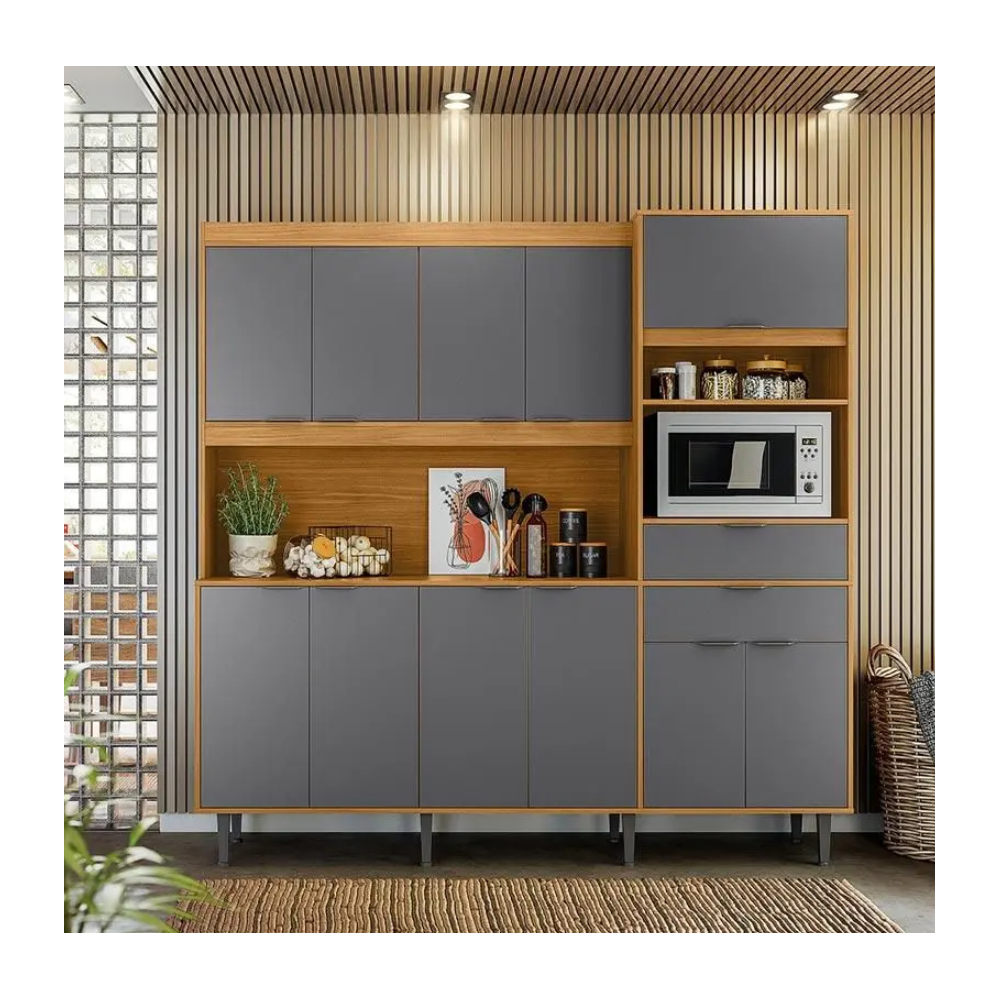 Buffet de cuisine BAHAMAS 904248 - Tiroirs équipés de glissières télescopiques - Porte basculante avec piston à gaz - Poignées ABS - 100% MDP 15mm - Avec sa largeur généreuse de 200 cm, la cuisine Bahamas offre suffisamment d'espace pour ranger les ustensiles de cuisine, les casseroles, la nourriture et plus encore - Ses étagères et armoires spacieuses offrent un endroit pratique pour organiser vos articles, gardant tout à portée de main et facilitant votre vie quotidienne en cuisine - Dimensions : H 2000 mm x L 2000 mm x P 410 mm.