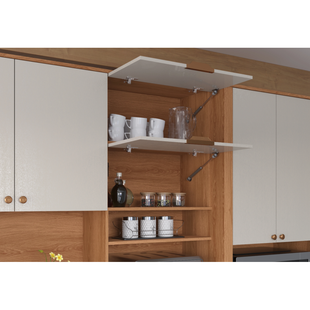 Buffet de cuisine BAHAMAS 904248 - Tiroirs équipés de glissières télescopiques - Porte basculante avec piston à gaz - Poignées ABS - 100% MDP 15mm - Avec sa largeur généreuse de 200 cm, la cuisine Bahamas offre suffisamment d'espace pour ranger les ustensiles de cuisine, les casseroles, la nourriture et plus encore - Ses étagères et armoires spacieuses offrent un endroit pratique pour organiser vos articles, gardant tout à portée de main et facilitant votre vie quotidienne en cuisine - Dimensions : H 2000 mm x L 2000 mm x P 410 mm.