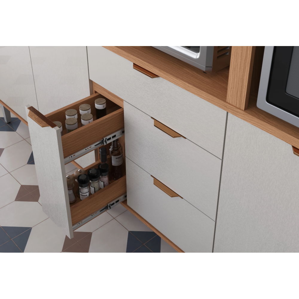 Buffet de cuisine DAKOTA 904251 - Le buffet DAKOTA est le choix parfait pour ceux qui recherchent une cuisine fonctionnelle, élégante et durable - Avec son grand espace de rangement, son design moderne et ses finitions de qualité, cette cuisine transformera votre cuisine en un environnement organisé et esthétique - 5 Portes battantes - Cave à vin - 1 Porte basculante avec piston à gaz - Poignées ABS - 100% MDP 15mm - 1 tiroir avec glissières télescopiques - Tiroir avec séparateur de couverts - Dimensions : H 2000 mm x L 1600 mm x P 410 mm.
